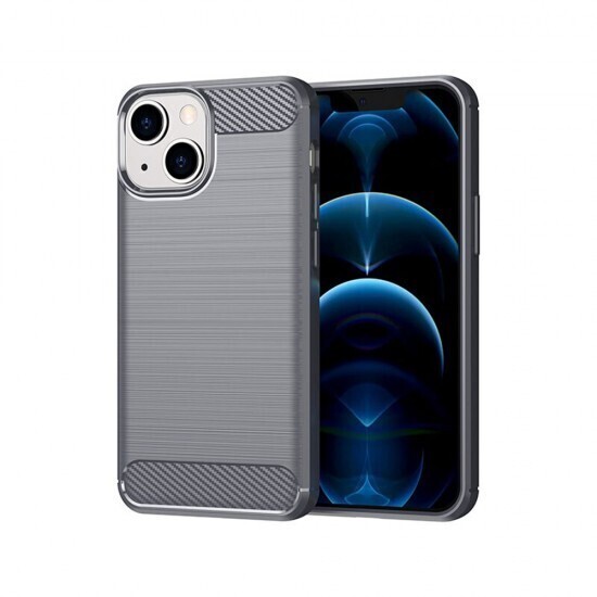 Чехол противоударный для iPhone 13 Mini, ТПУ, серый, с карбоновым рисунком