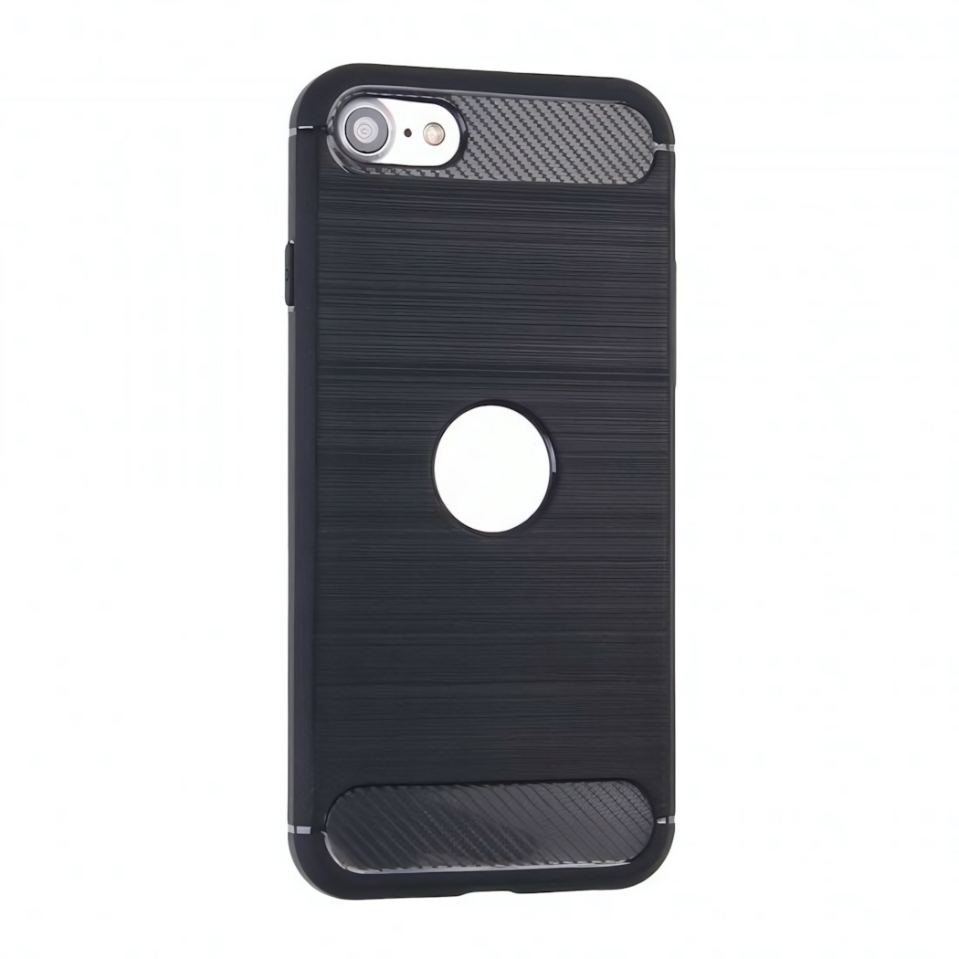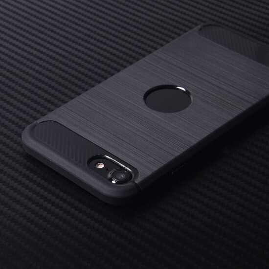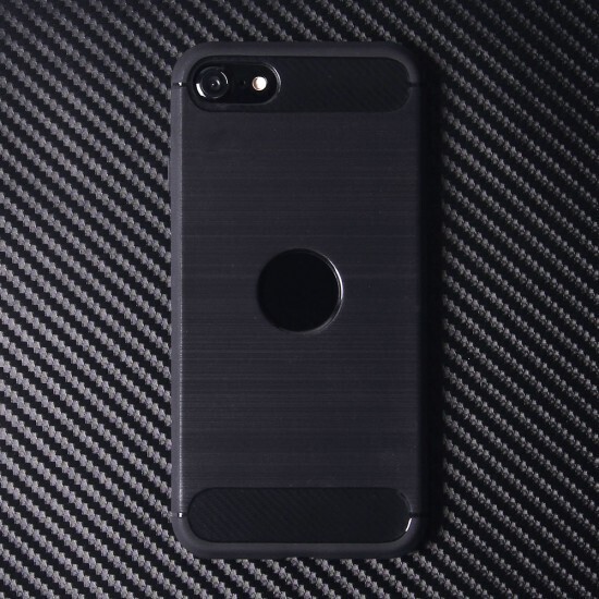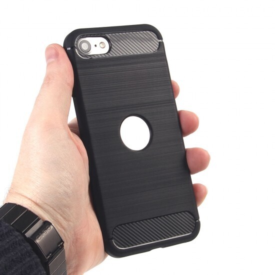 Чехол совместим с iPhone SE (2020), 7 и 8 поколения. Гибкий полиуретан сохраняет тонкий профиль устройства, обеспечивая при этом амортизацию при падениях. Задняя панель с текстурой карбона устойчива к отпечаткам, а противоскользящие грани гарантируют уверенный хват.