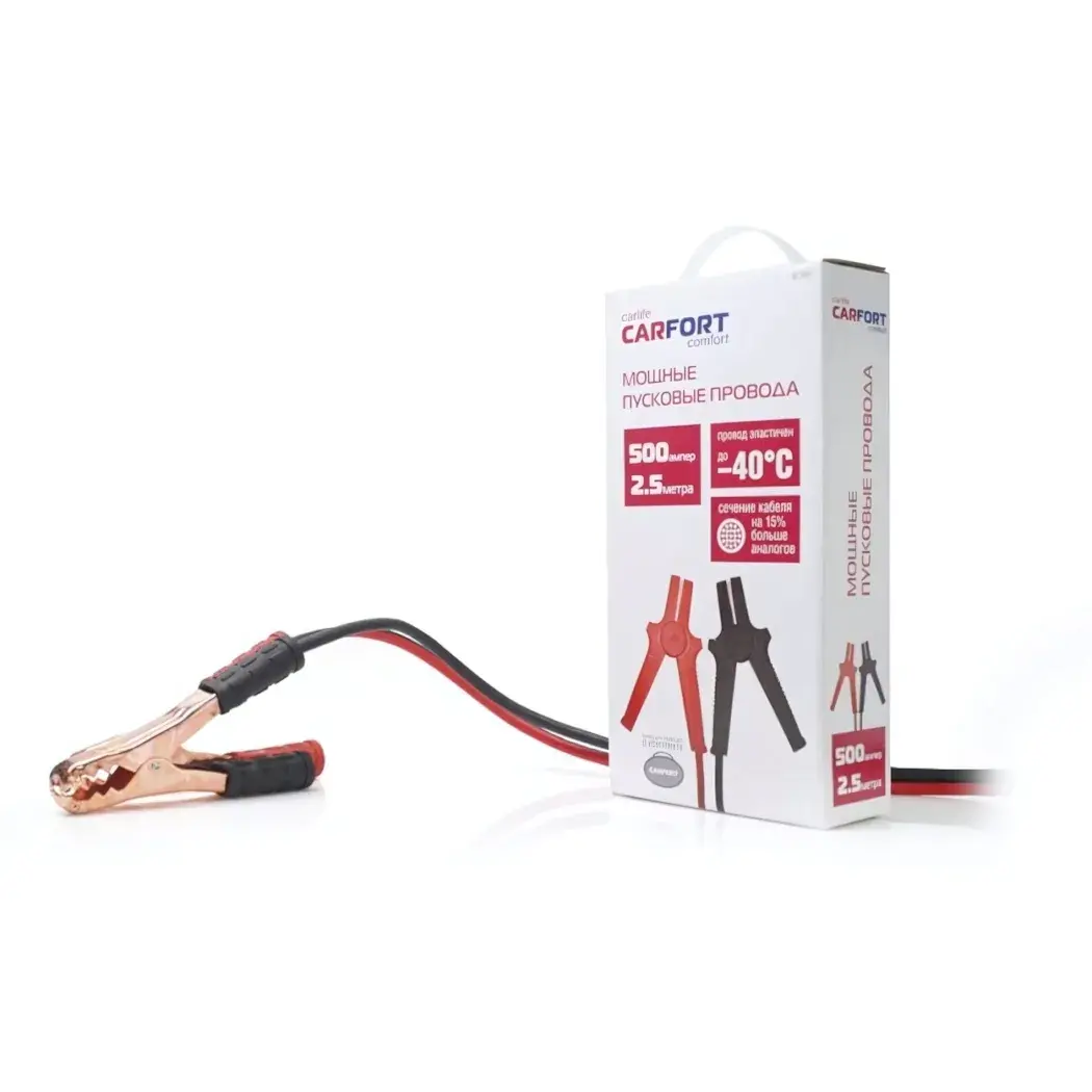 Пусковые провода усиленные CarFort BC-2050, 500 А, 2,5 м, красно‑черные, ускорительный запуск