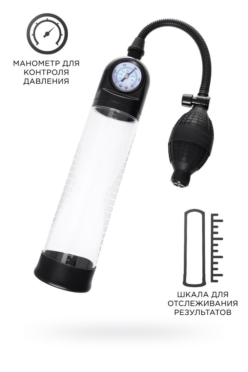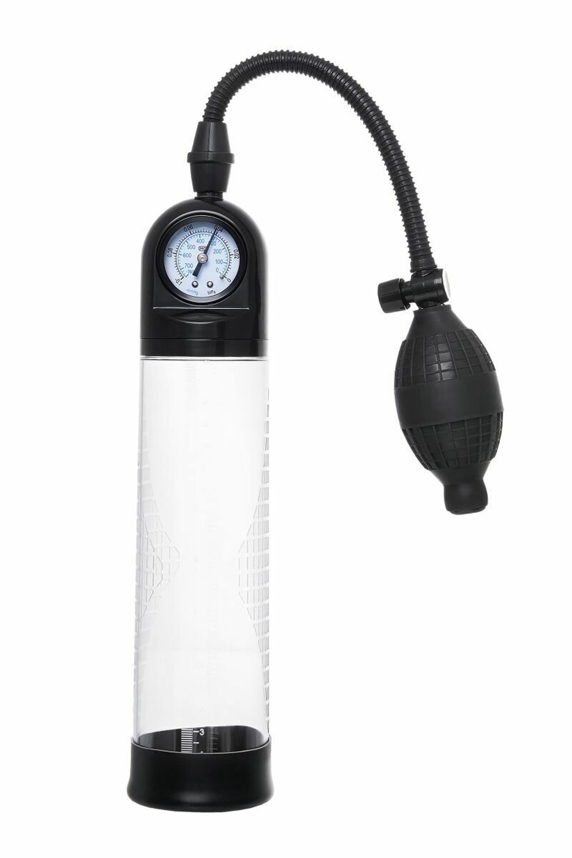 Помпа вакуумная Sexus Men Training с манометром, прозрачный ABS-пластик, диаметр 6 см, 20 см