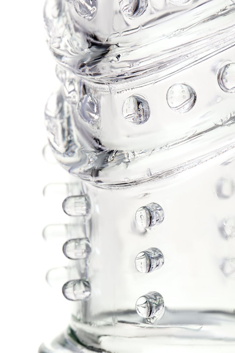 Насадка имеет цилиндрическую форму с рельефными элементами, что делает ее не только функциональной, но и привлекательной. Она не содержит фталатов и водонепроницаема, что упрощает уход и использование. Размеры: длина 15,5 см, материал — термопластичная резина (TPR). Насадка не имеет вибрации, что делает ее идеальной для тех, кто предпочитает естественные ощущения.