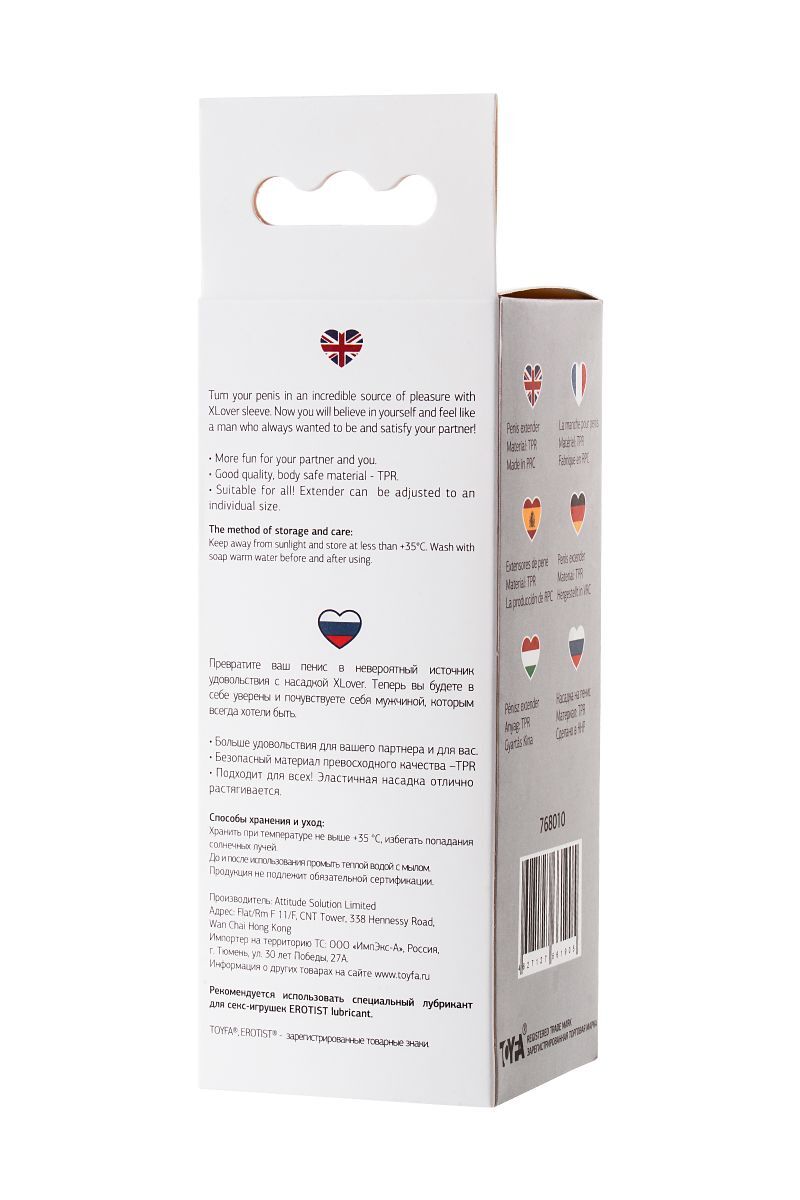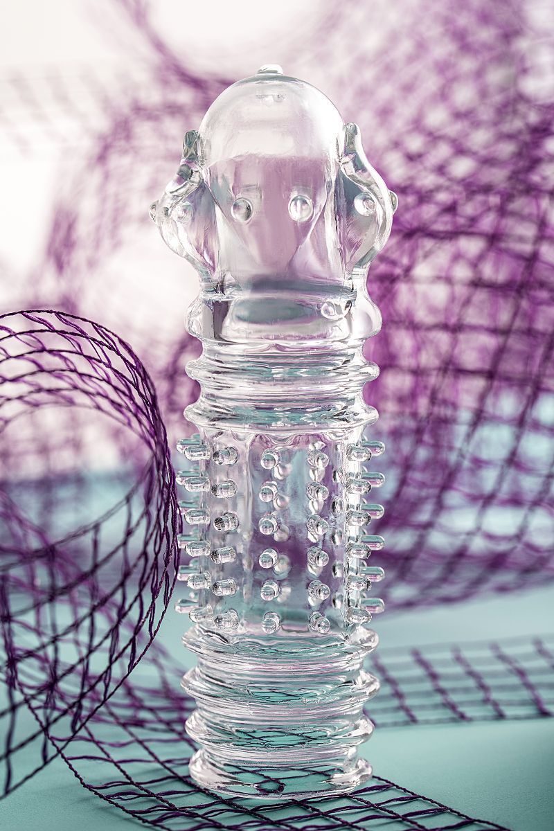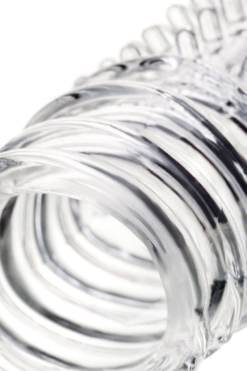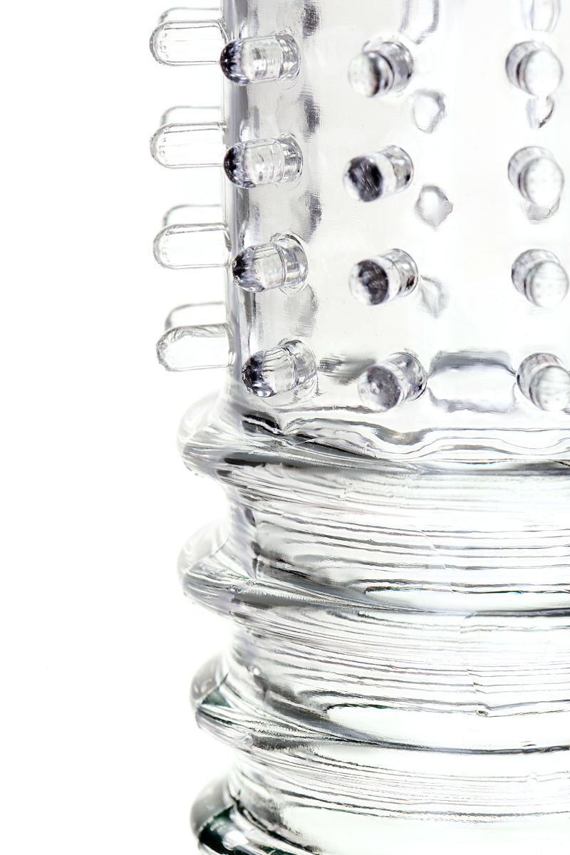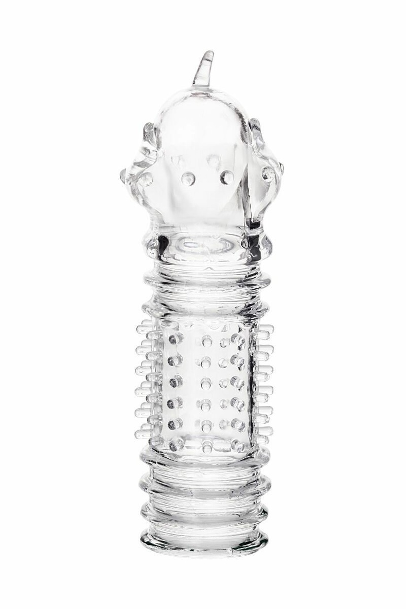 Насадка изготовлена из термопластичной резины (TPR), что делает её безопасной для здоровья и приятной на ощупь. Прозрачный цвет позволяет видеть текстуру и детали, а рельефная поверхность с выступами и шипами добавляет дополнительные ощущения. Вы сможете наслаждаться новыми гранями близости, не беспокоясь о качестве материала.