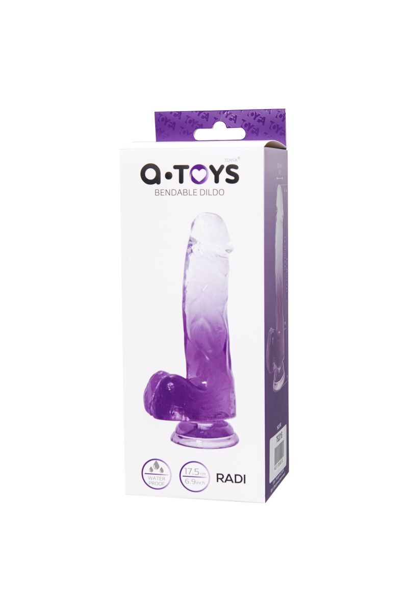 Фаллоимитатор "Radi" гибкий с присоской, 17.5 см, фиолетовый градиент, TPE, реалистичная текстура