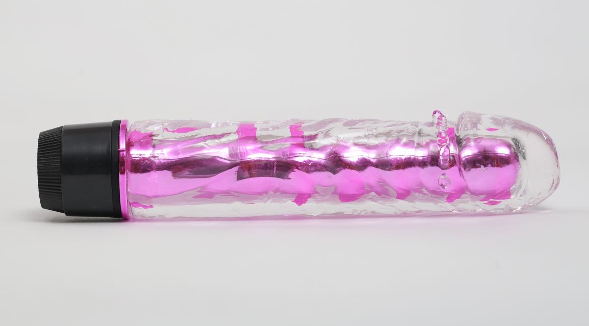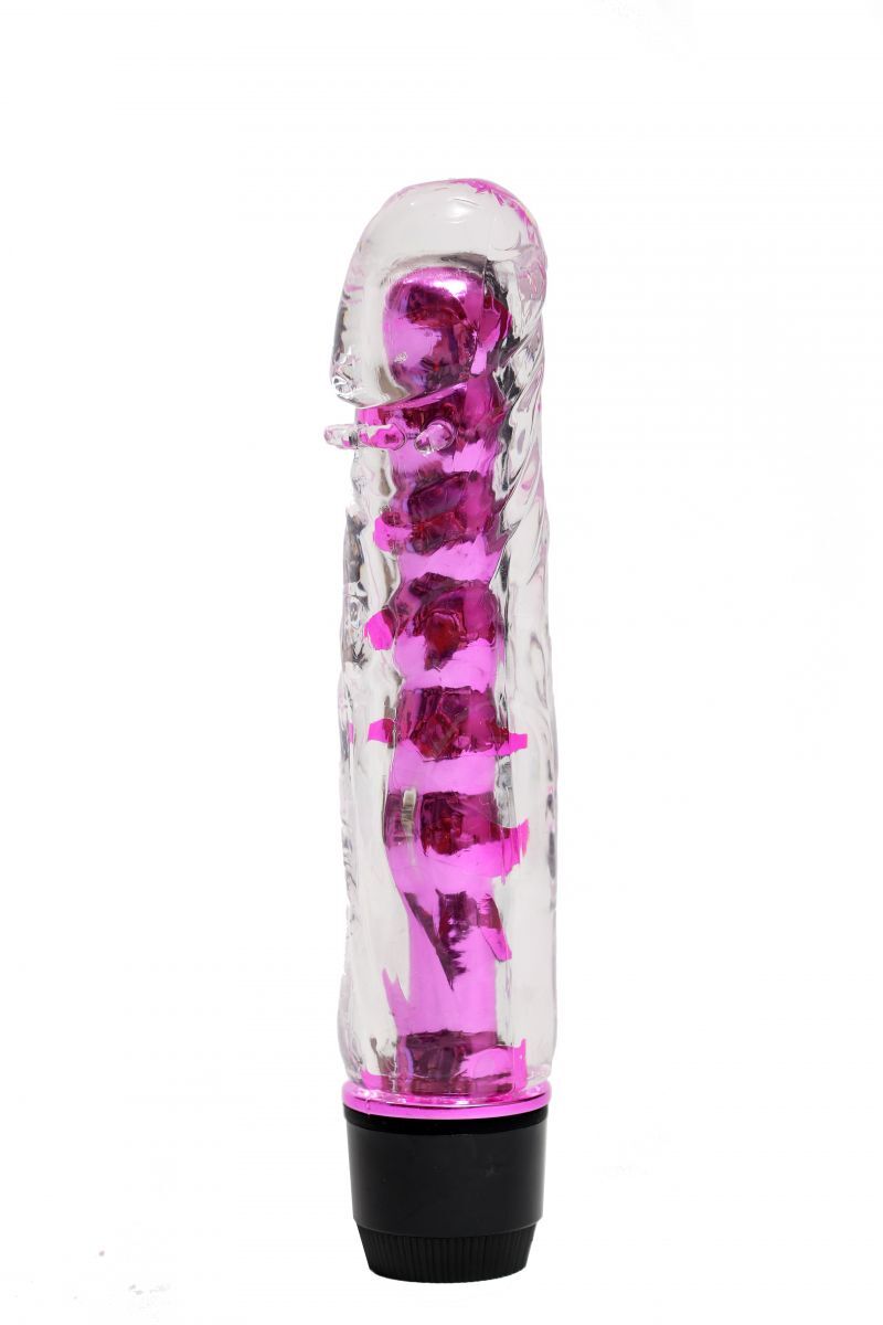 Прозрачно-розовый вибратор с пупырышками