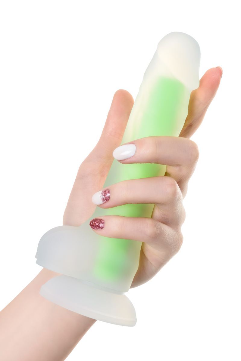 Фаллоимитатор Dick Glow с подсветкой, силиконовый, 18 см, присоска, зеленый – для комфортного использования
