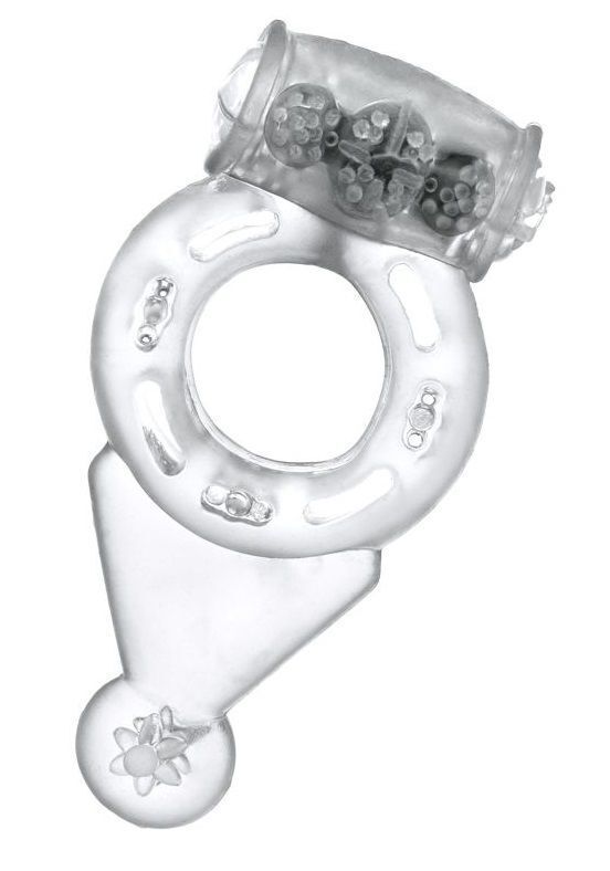 Эрекционное виброкольцо с шариками, диаметр 3.5 см, прозрачное, TPE, вибрация в комплекте