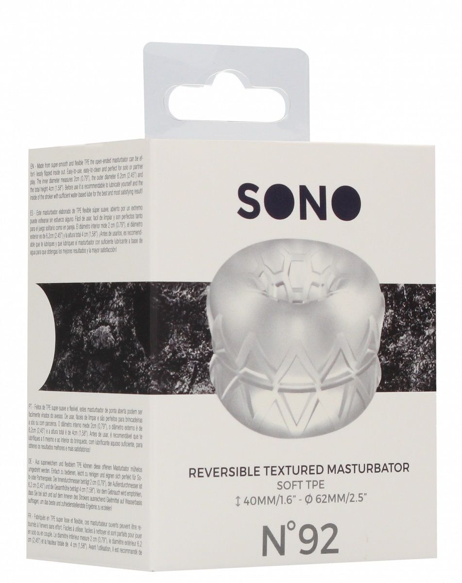 Откройте для себя уникальный мастурбатор 'SONO' №92 с инновационной реверсивной системой. Просто выверните изделие наизнанку и получите совершенно новые ощущения благодаря различным текстурам внутри и снаружи.