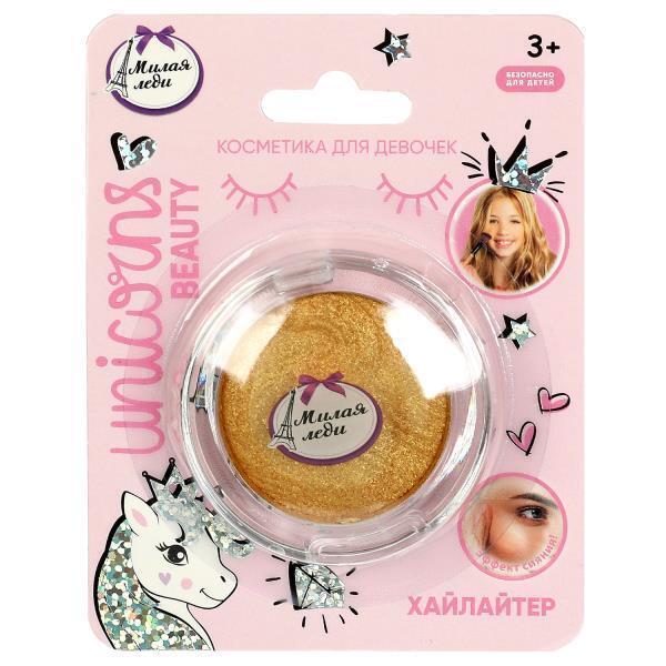 Хайлайтер детский золотой 3г, безопасная пудра с эффектом сияния, дизайн с единорогом