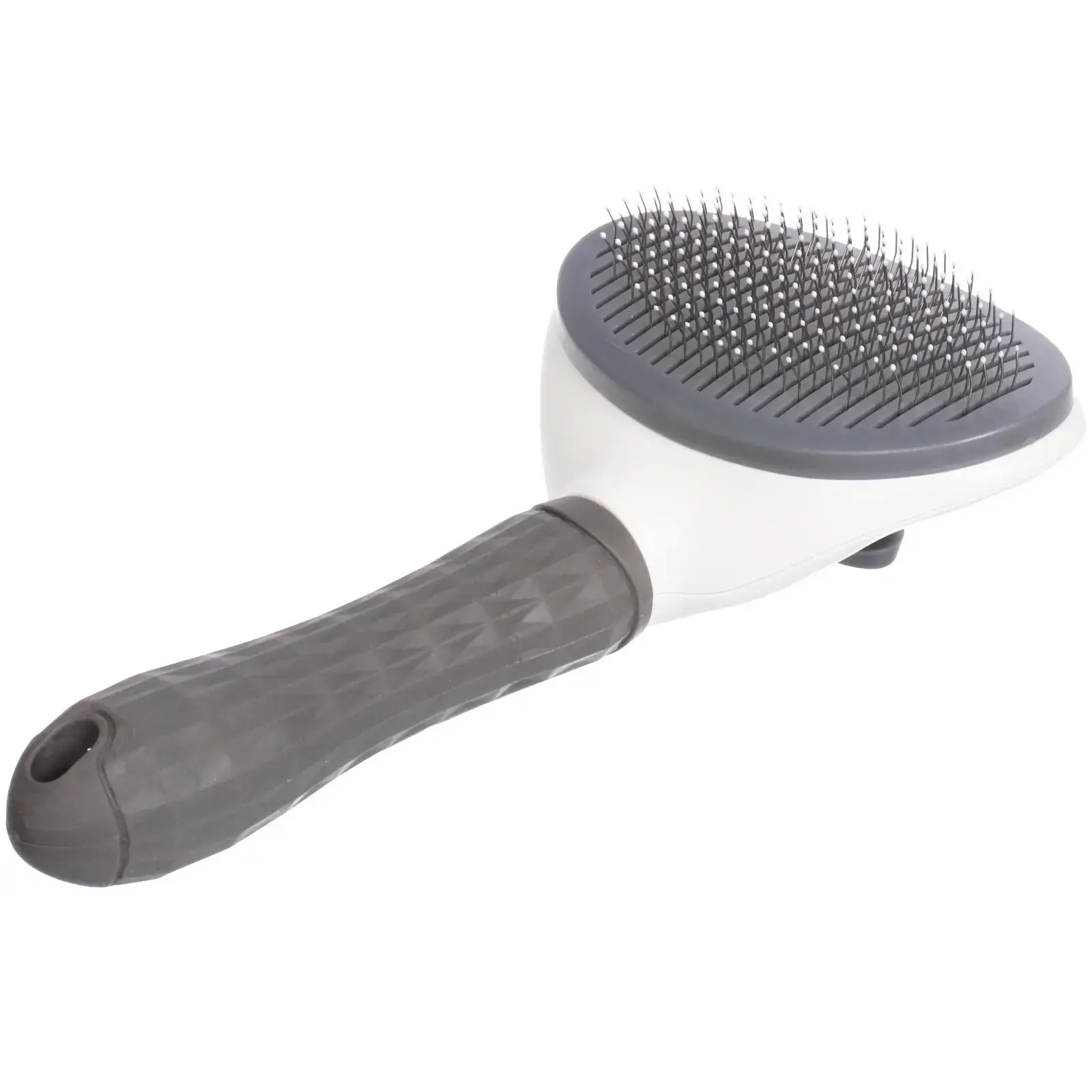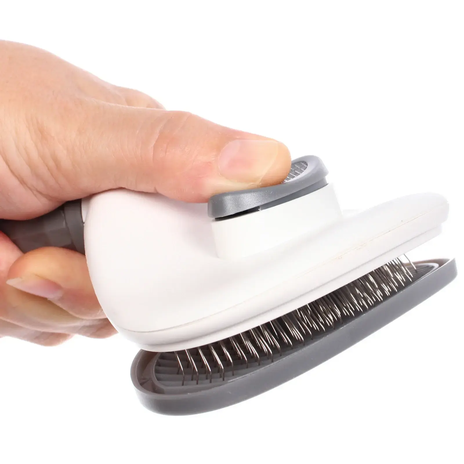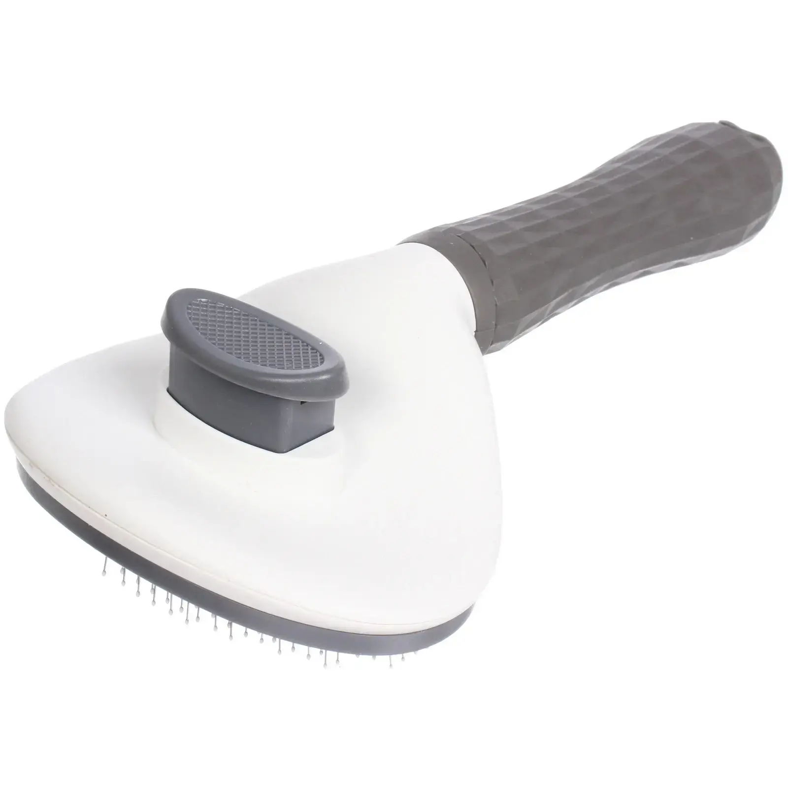 Просто проведите пуходеркой по шерсти питомца против роста волос. Для очистки нажмите кнопку самоочищения — собранные волосы легко удаляются. Рельефная ручка обеспечивает удобный захват, делая процесс комфортным.