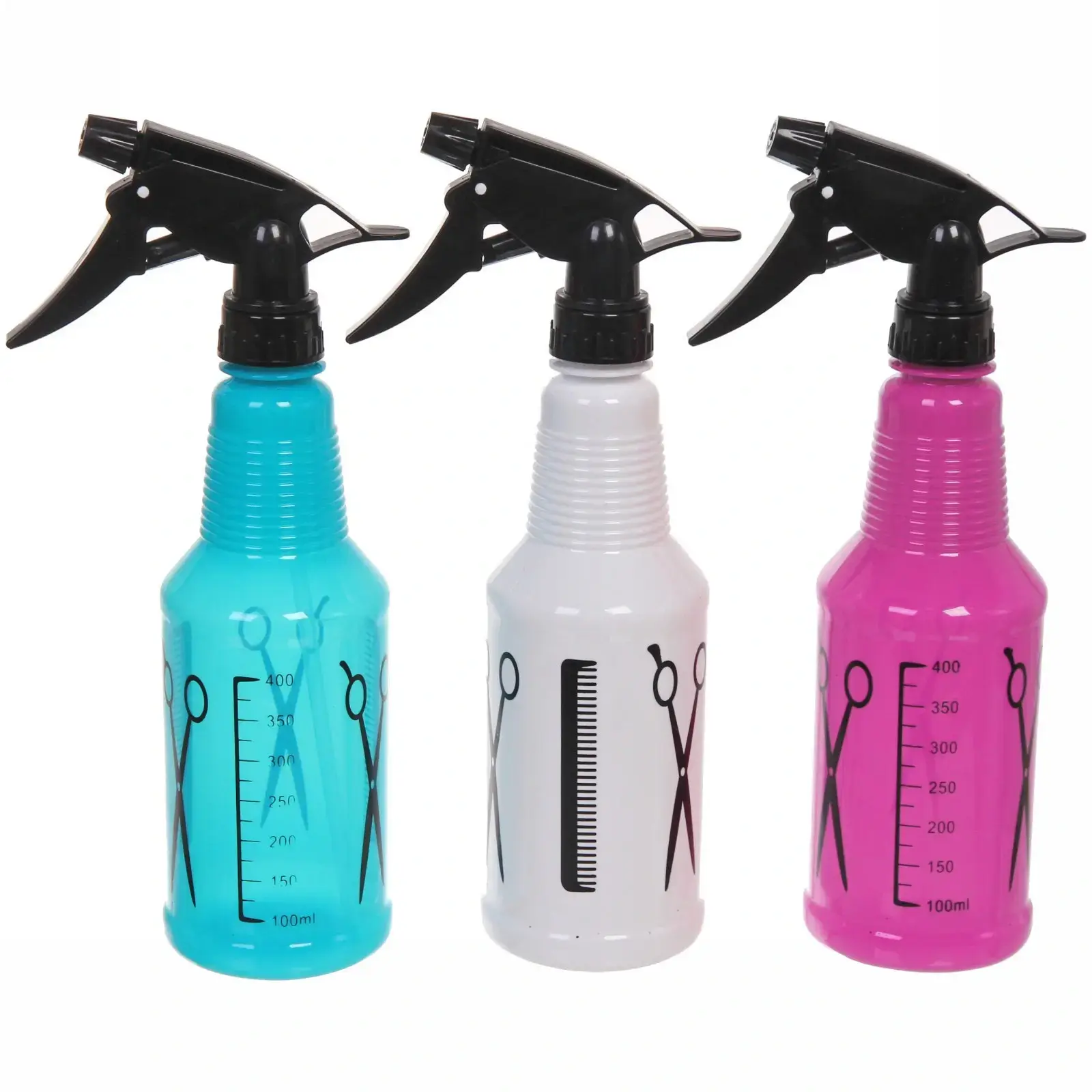 Пульверизатор представлен в трех цветовых вариантах: голубой, белый и розовый. Дизайн с изображением ножниц и расчески подчеркивает профессиональное назначение аксессуара.