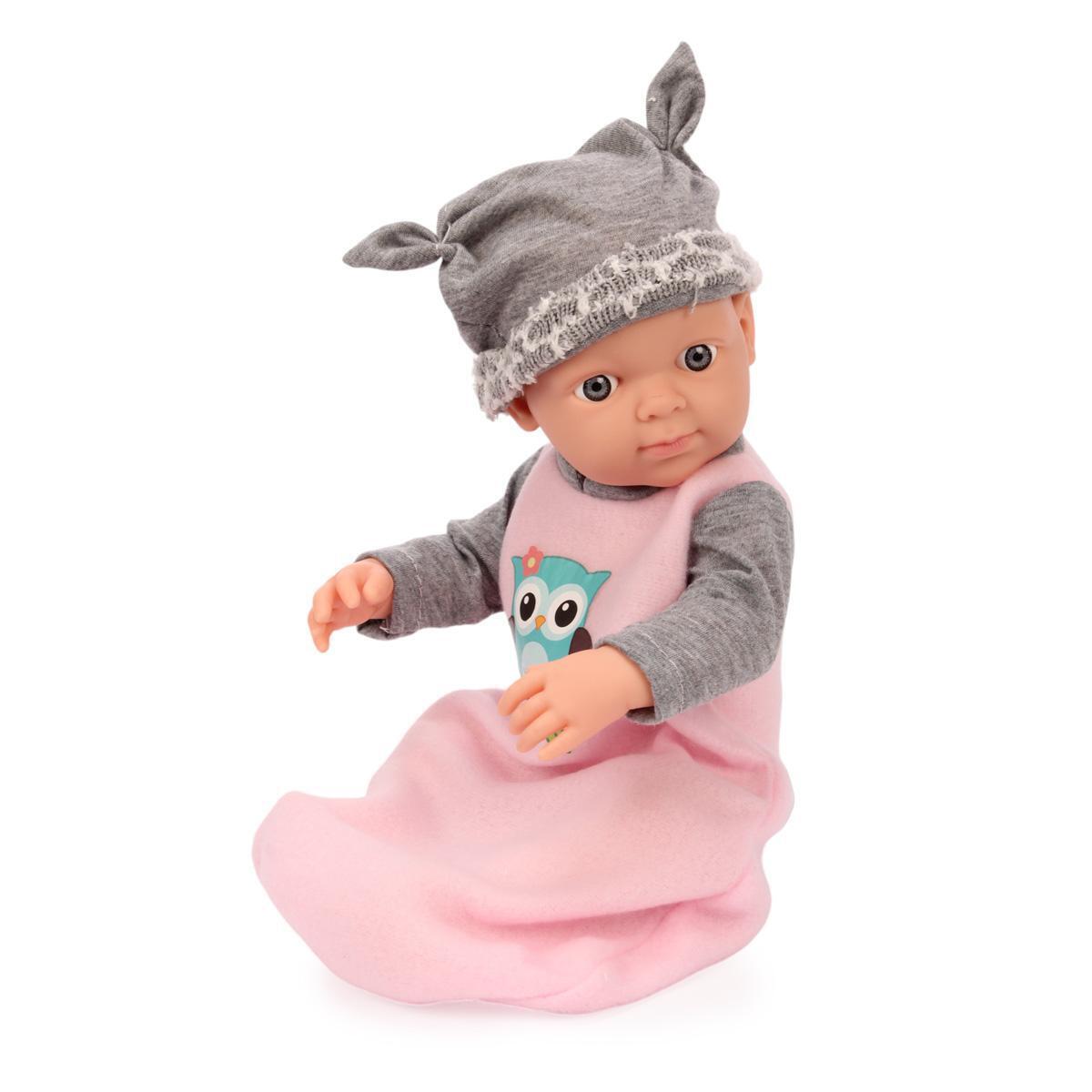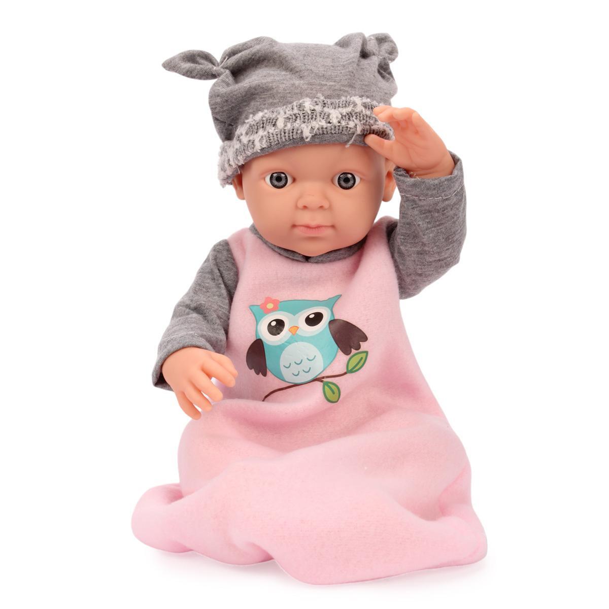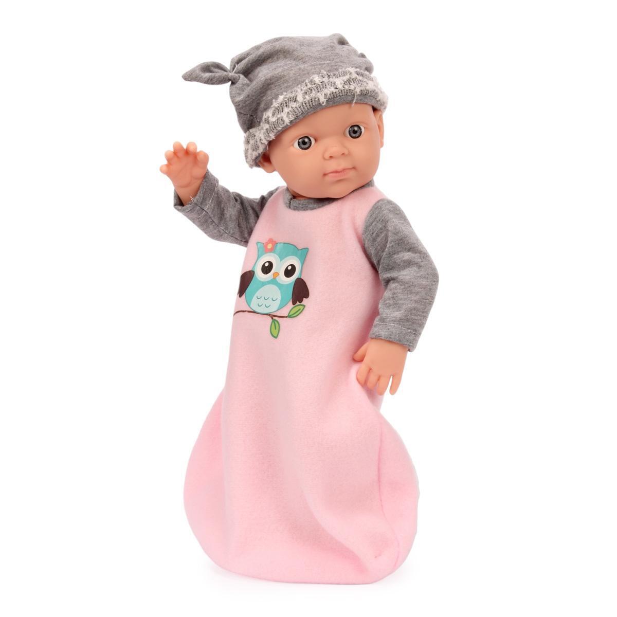 Пупс с анатомически точными чертами лица и подвижными конечностями станет верным другом для вашего ребенка. Мягкая текстильная одежда с милым принтом совы и удобная съемная шапочка позволяют создавать новые образы для ролевых игр.