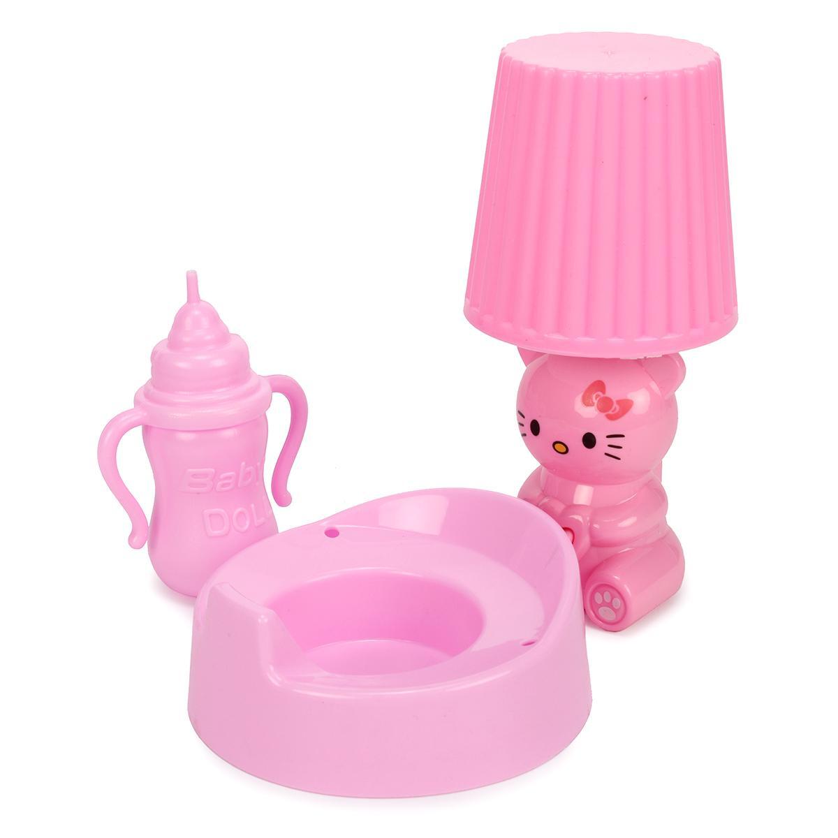 Игрушка включает в себя 6 аксессуаров, таких как бутылочка, горшок, подушка, а также кроватка с ярким дизайном. Благодаря функциям, ребенок учится кормить, укладывать спать, менять подгузник и ухаживать за малышом, что способствует развитию ответственности и эмоциональной отзывчивости.