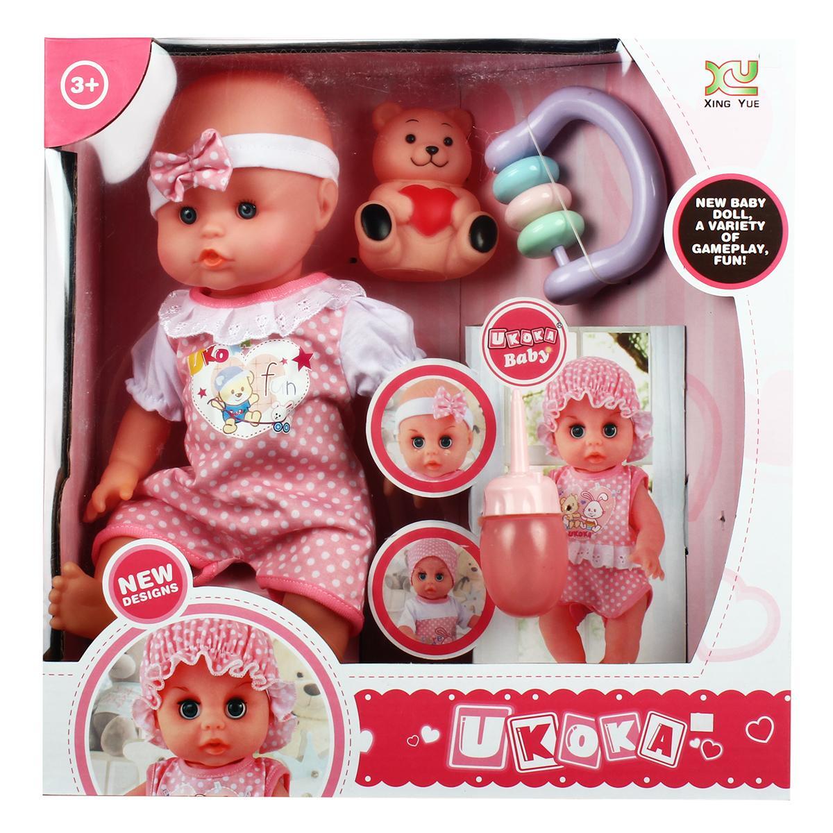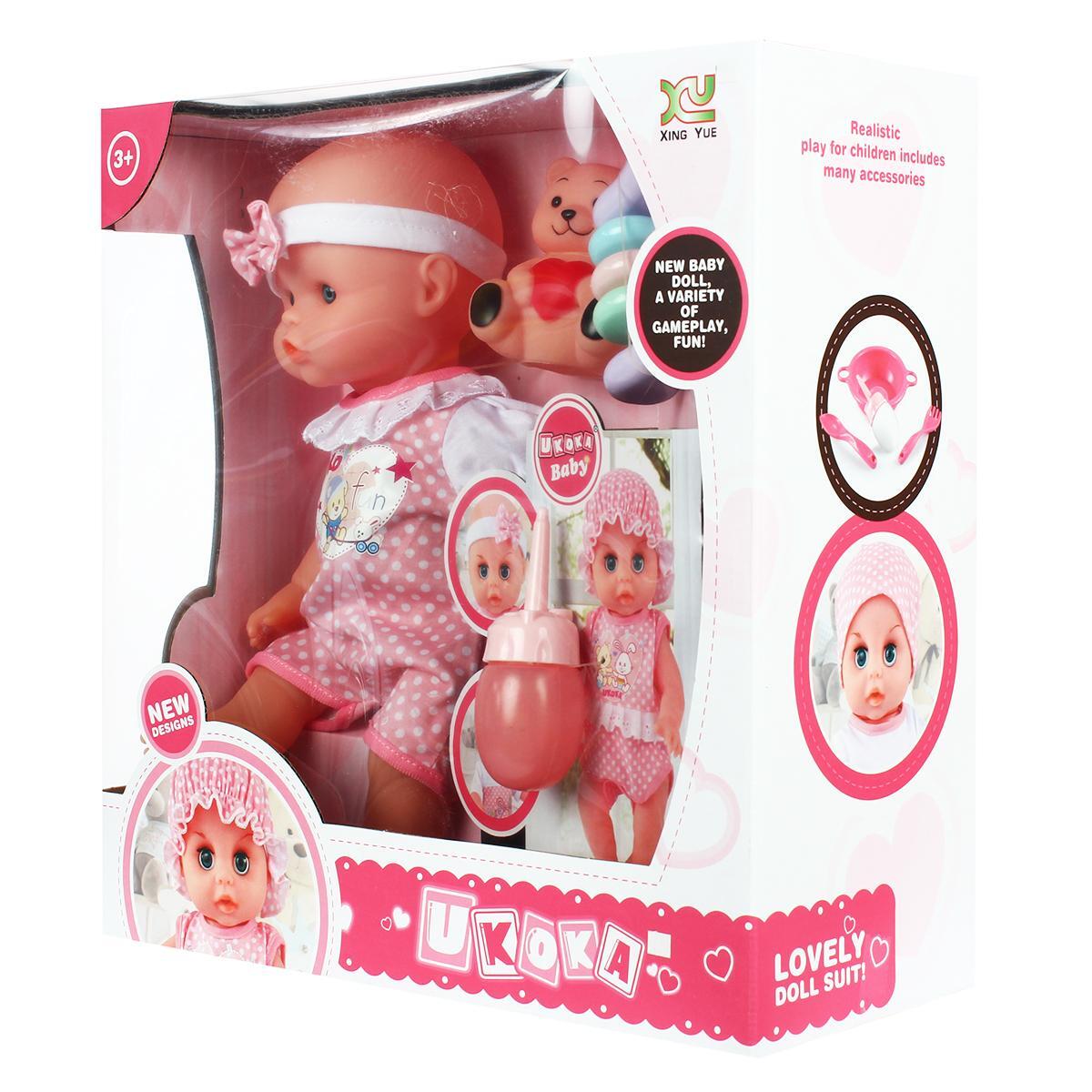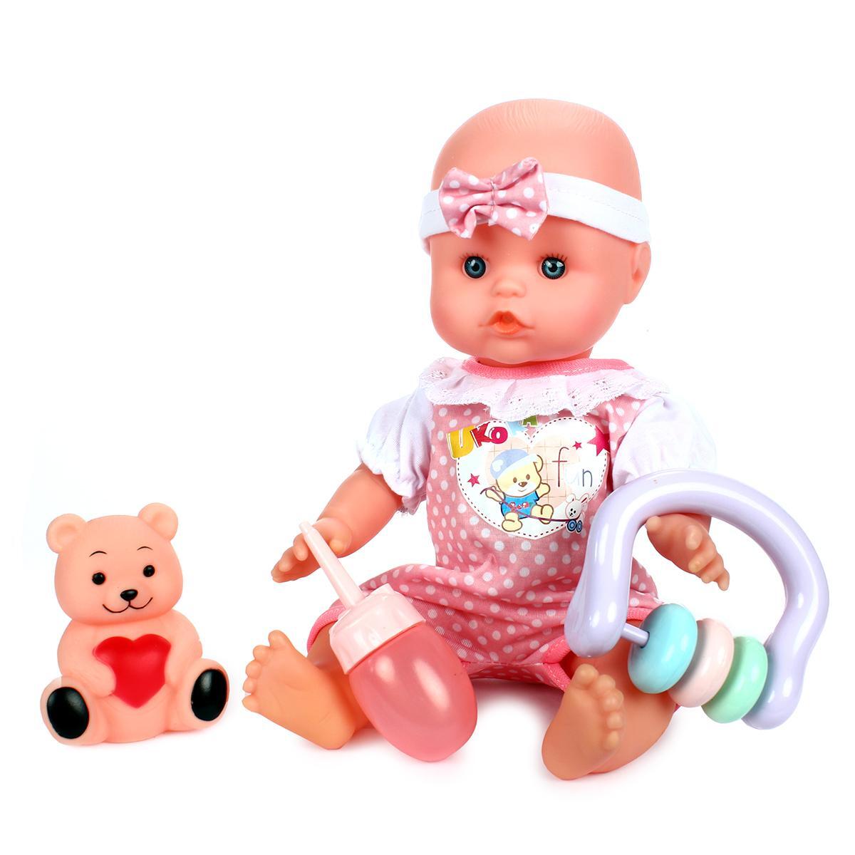 Пупсик легко управляется и подходит для детей от 3 лет. Он издает реалистичные звуки, такие как смех и лепет, что добавляет игре живости. В комплект входят аксессуары: бутылочка, подгузник и погремушка, что позволяет разнообразить игровые сценарии. Пупс имеет подвижные ручки и ножки, что позволяет менять его позы и делать игру еще более интересной.