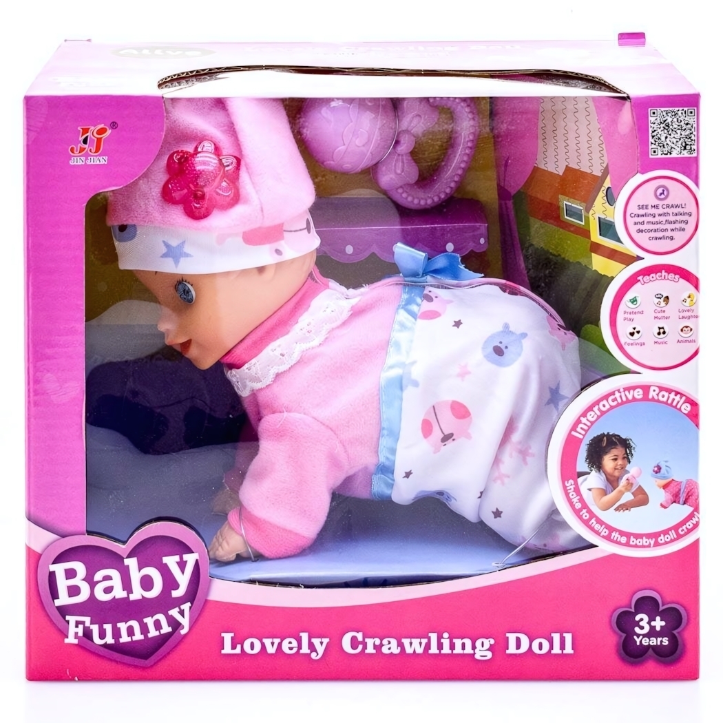 Пупс интерактивный «Baby Funny» с погремушкой, ползает, розовый комбинезон, 30 см