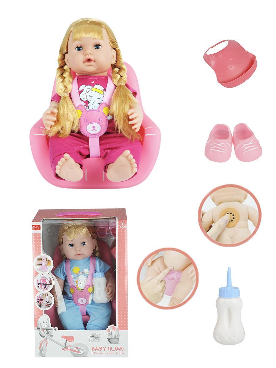 Пупс интерактивный с кнопкой, 42 см, звуки, аксессуары (кресло, бутылочка), для детей от 3 лет