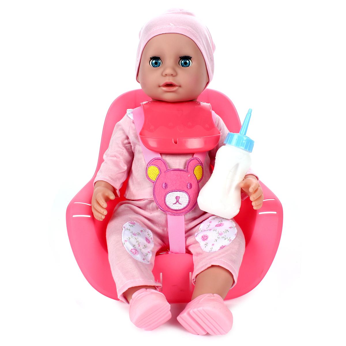 Изготовлен из безопасных материалов: пластика, винила и текстиля, что обеспечивает долговечность и безопасность для малыша. В комплект входит аксессуары: бутылочка для кормления и подгузник, позволяющие учиться заботе и делиться заботой о кукле.