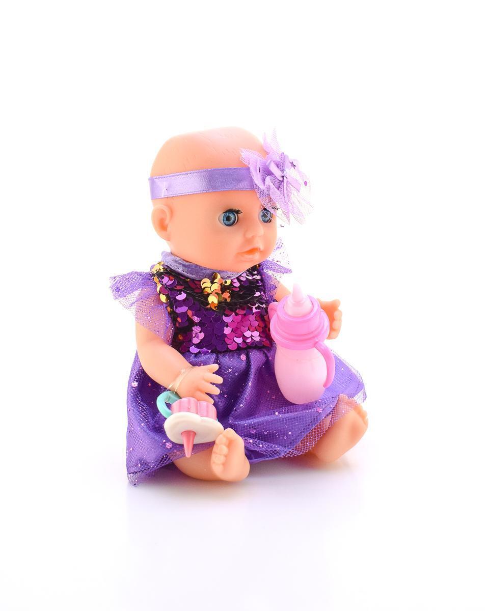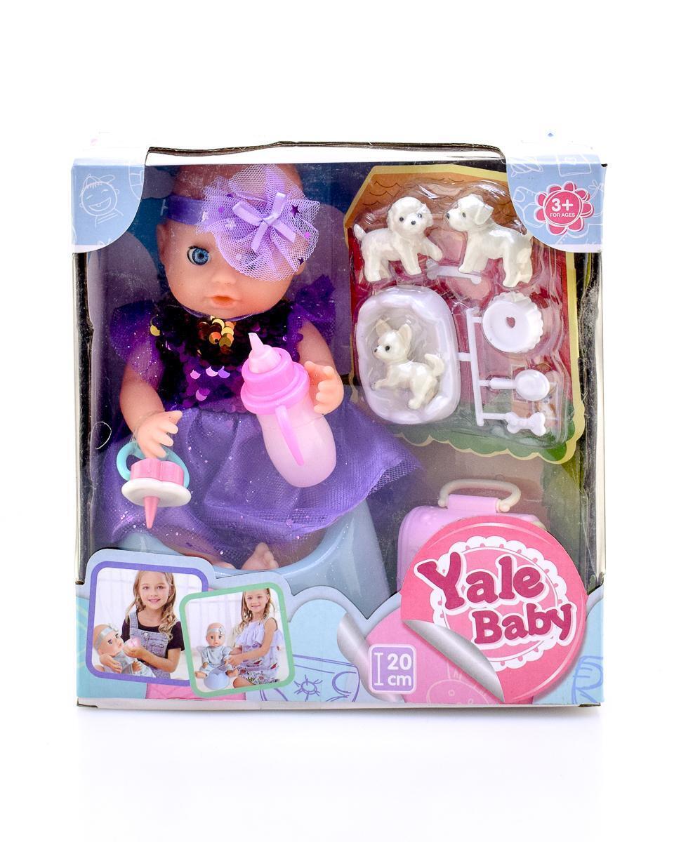 Пупс Yale Baby 20см, пьёт/закрывает глазки/ходит в горшок, фиолетовое платье