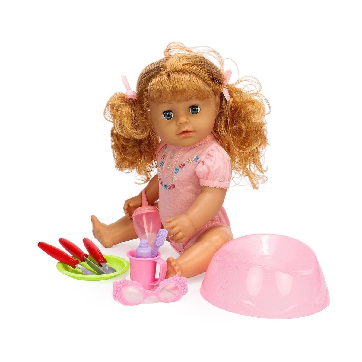 Пупс интерактивный с аксессуарами, 40 см, 6 функций: пить, горшок, слезы, пластик, ПВХ, текстиль