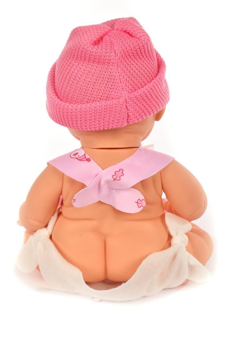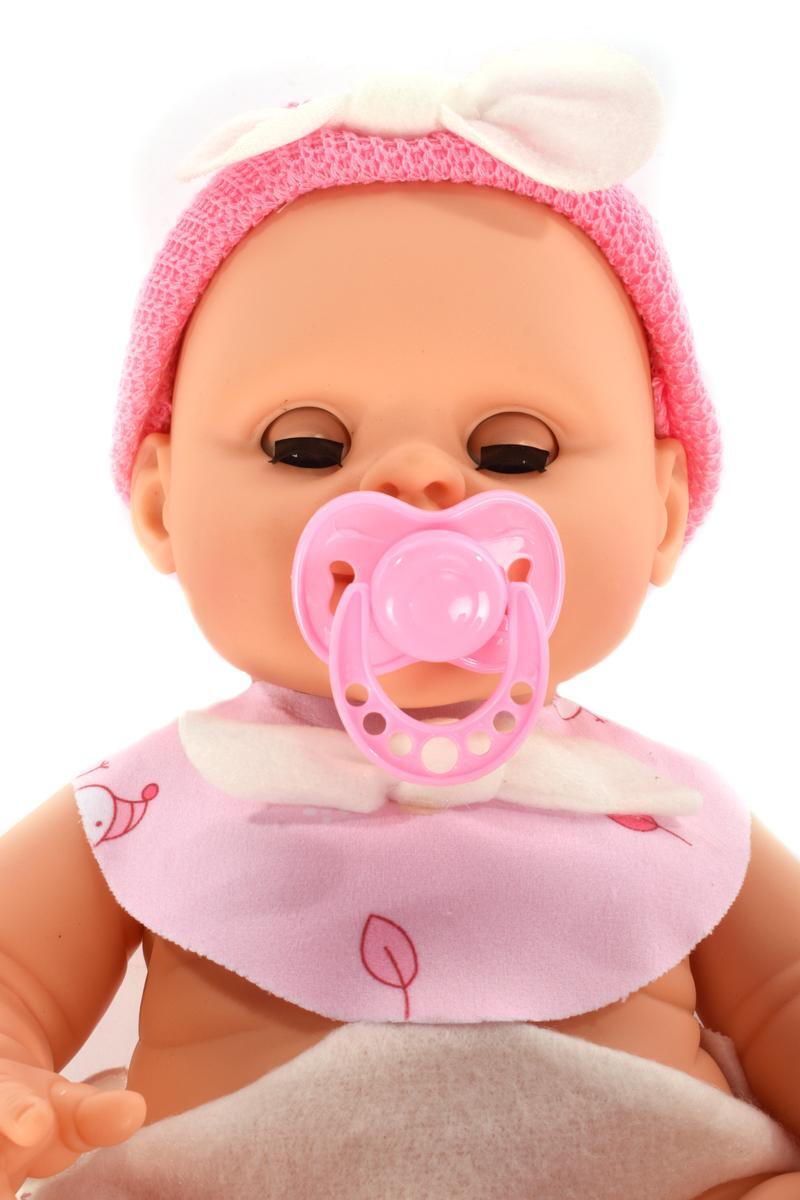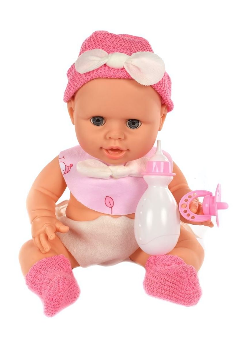 Игрушка подходит для детей старше 3 лет и предназначена для ролевых игр, развития фантазии и внимания. В комплект входит горшок, бутылочка, соска, памперс и одежда, что обеспечивает полноценную игру и уход за куклой. Нажатие на звуковой модуль произносит детские фразы, стимулируя развитие речи и воображения.