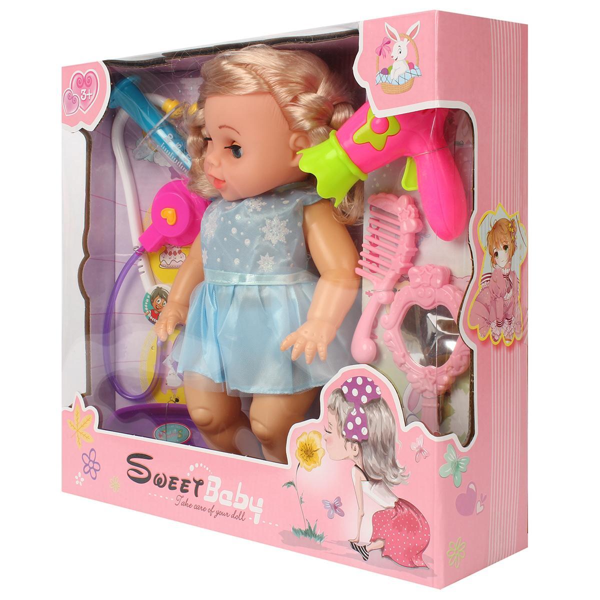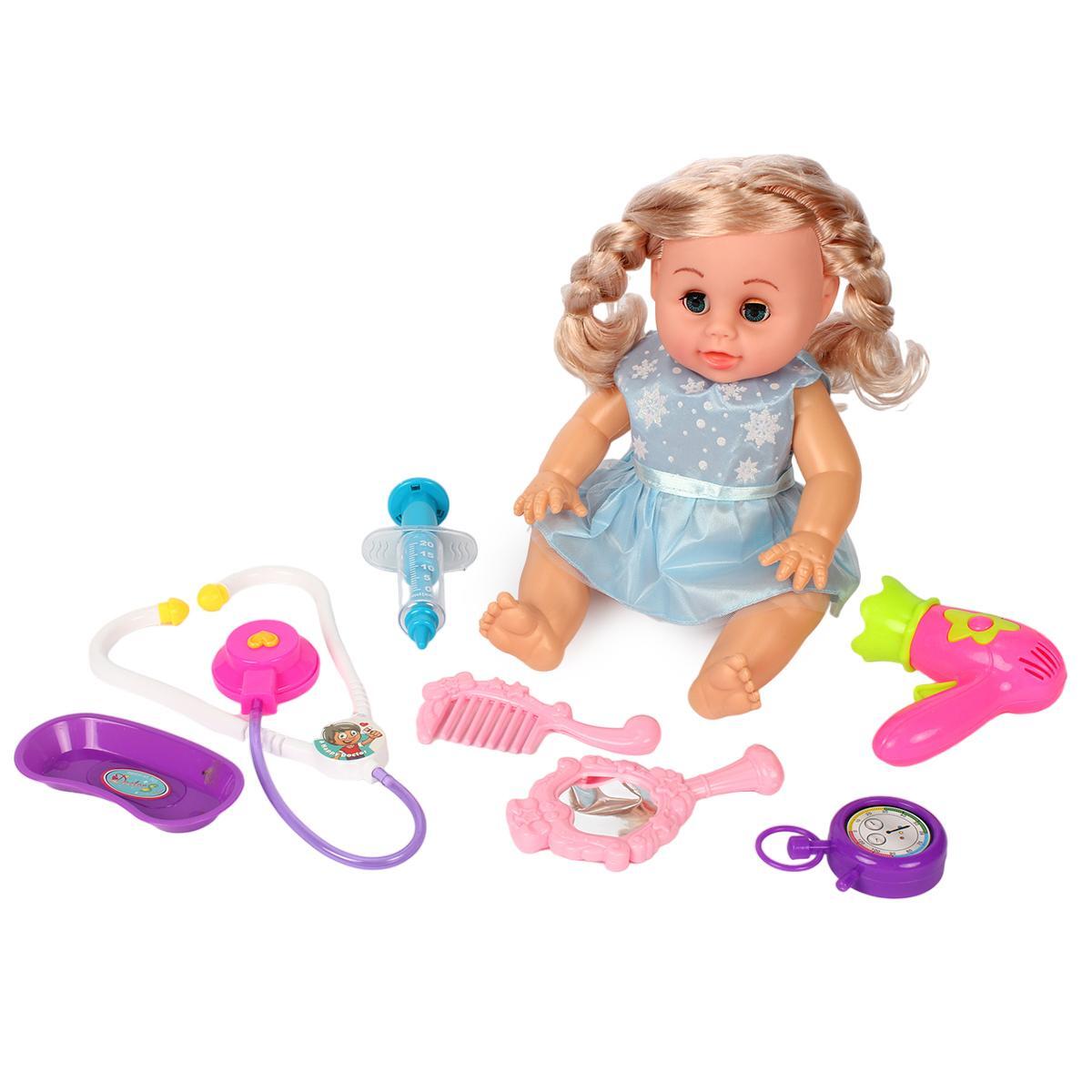 функциональным пупсом и набором аксессуаров, который подарит множество часов приятного времяпровождения. Эта игрушка создана специально для детей, любящих играть в врача, уход за куклой или просто развивать фантазию. В комплект входит 32-сантиметровая кукла, выполненная из безопасных материалов: пластика и винила, а также разнообразные аксессуары: стетоскоп, шприц, расческа, зеркало, фен и другие, что помогает развивать моторику и социальные навыки.