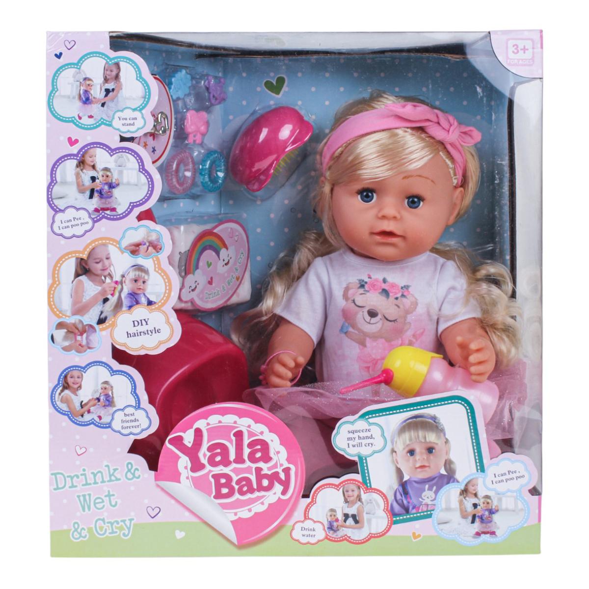 Ребёнок сможет кормить пупса, «поить» его из бутылочки, сажать на горшок, придумывать истории, украшать волосы резинками и короной. Набор аксессуаров помогает развивать фантазию, мелкую моторику и социальные навыки через игру.