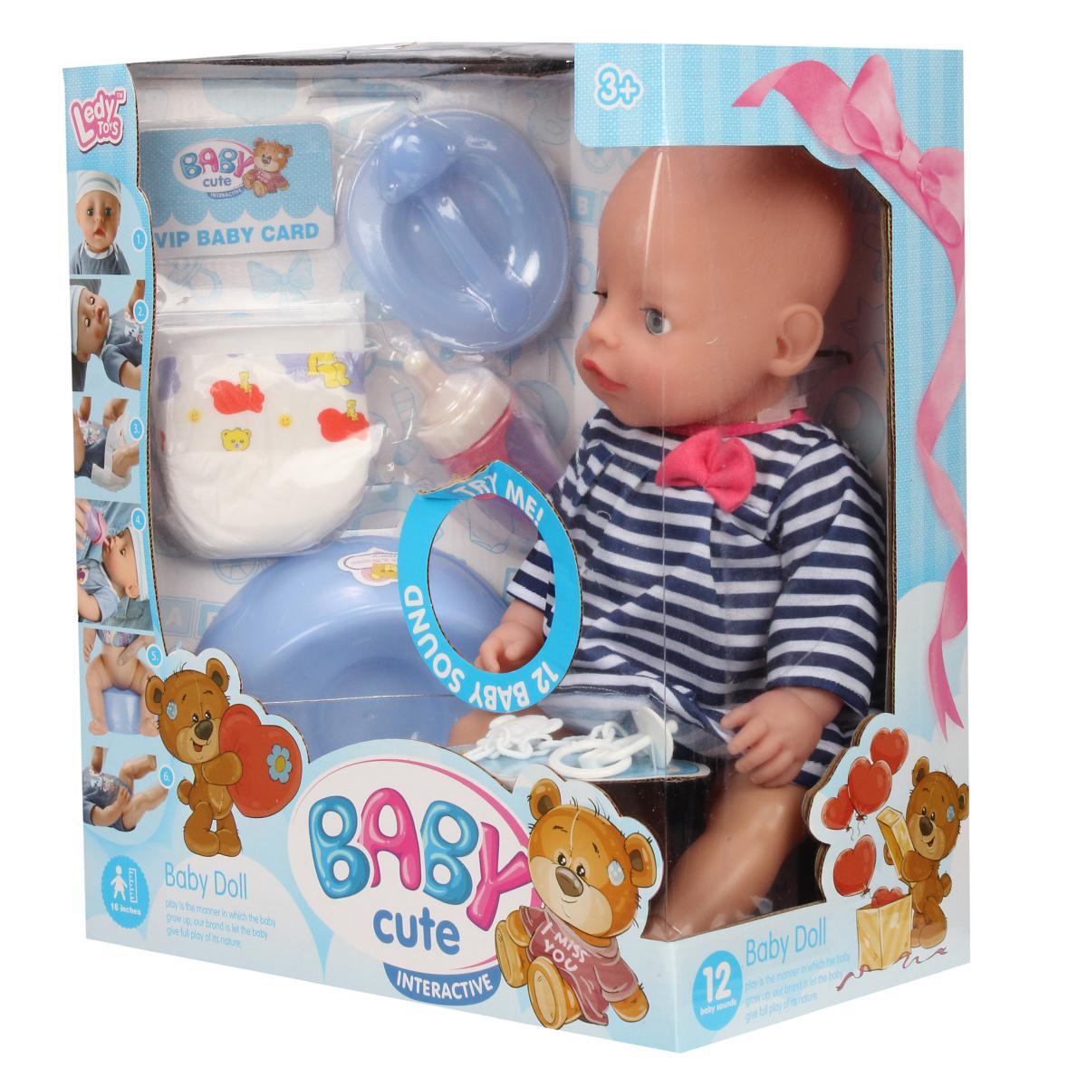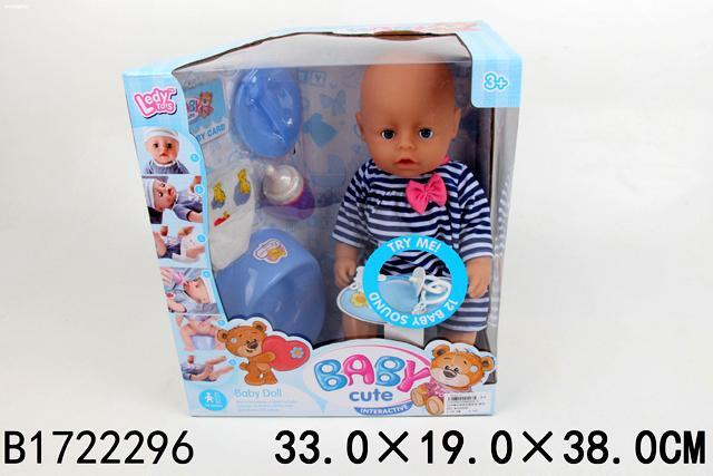 Пупс интерактивный 40см, голубые глаза, звуковые эффекты, аксессуары