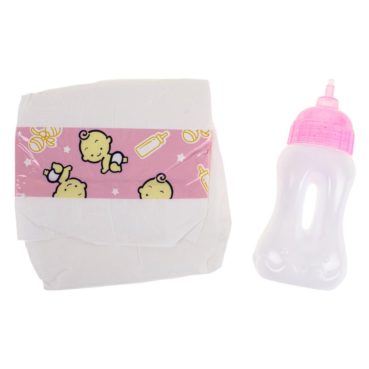 Преимущества этого товара — детальная проработка дизайна, безопасные материалы (пластик, текстиль), а также наличие аксессуаров: подгузник и бутылочка, что делает игру максимально реалистичной и интересной.