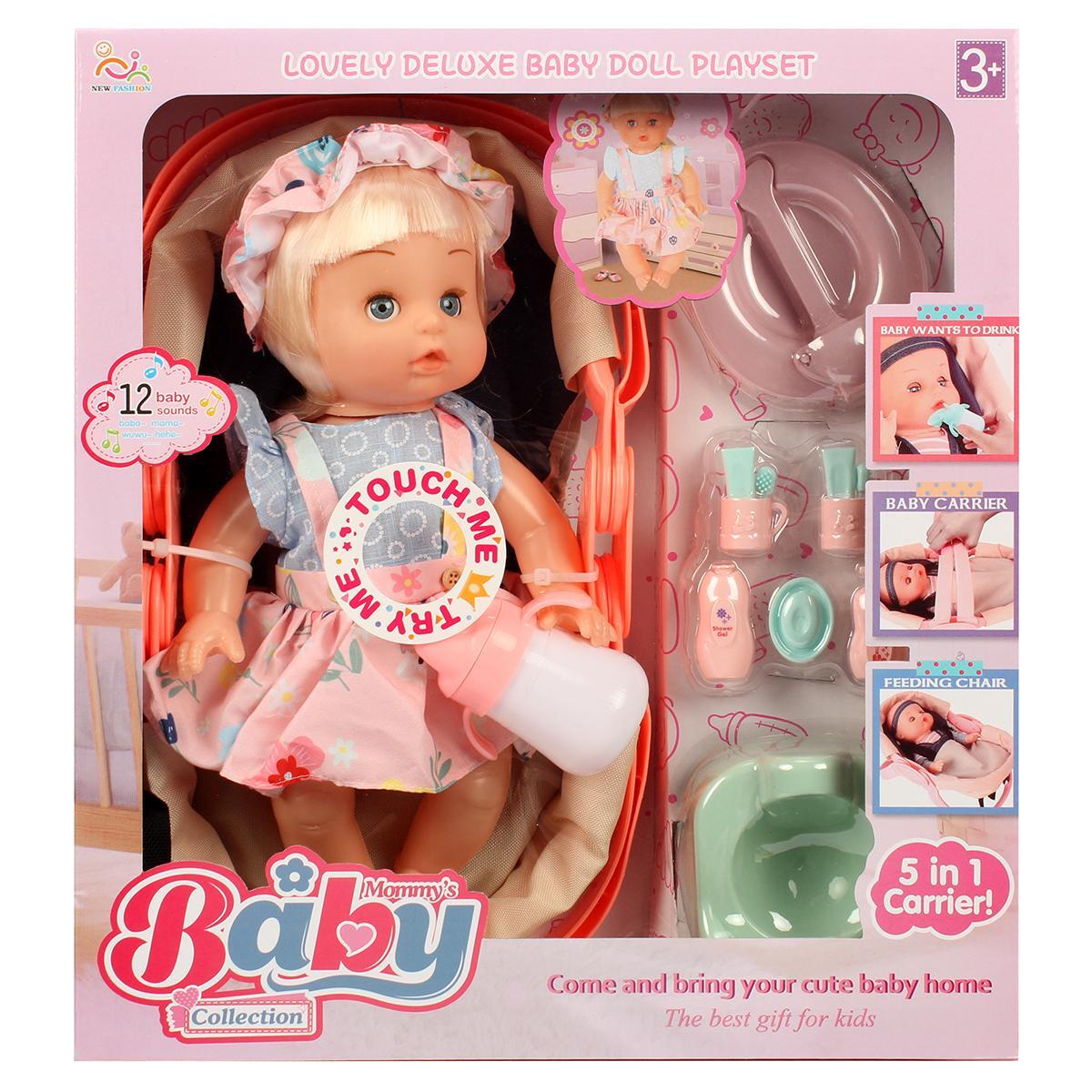 Пупс предназначен для детей от 3 лет и идеально подходит для ролевых игр в «Дочки-матери». Куклу можно напоить водой и посадить на горшок, что делает игру более интерактивной. В комплект входят 13 аксессуаров, включая бутылочки, ложки и стульчик для кормления, что позволяет вашему ребенку создавать различные сценарии игры.