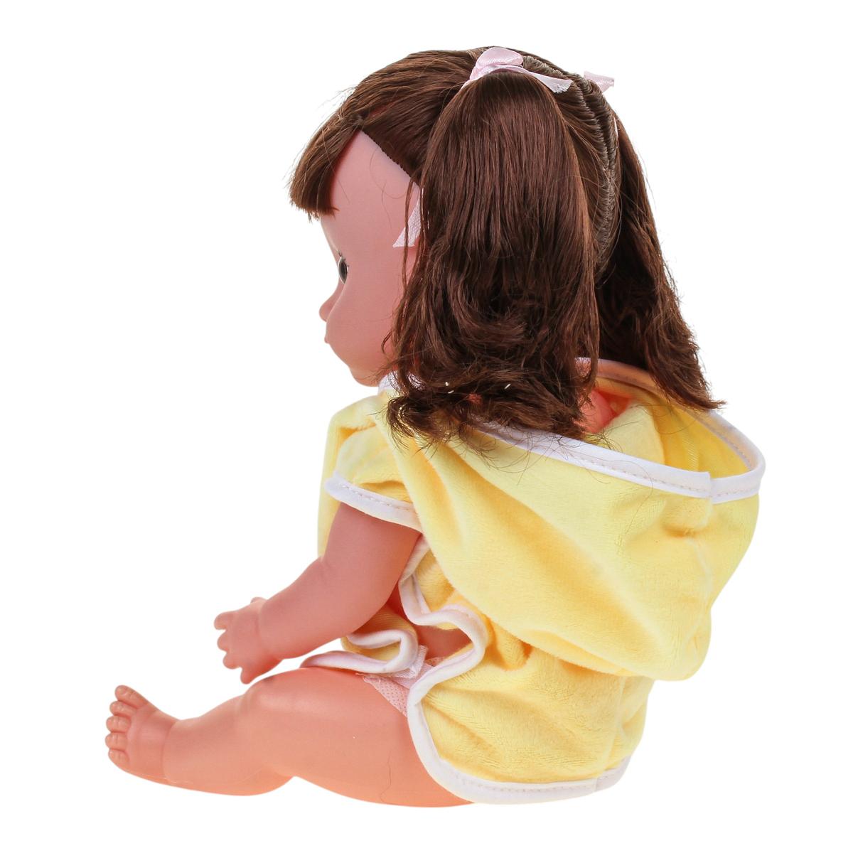Пупс выполнен из качественных материалов и имеет приятный внешний вид: выразительные глаза, аккуратную прическу и яркий наряд. Это функциональная игрушка, которая надолго увлечет ребенка и сделает игру насыщенной и разнообразной.