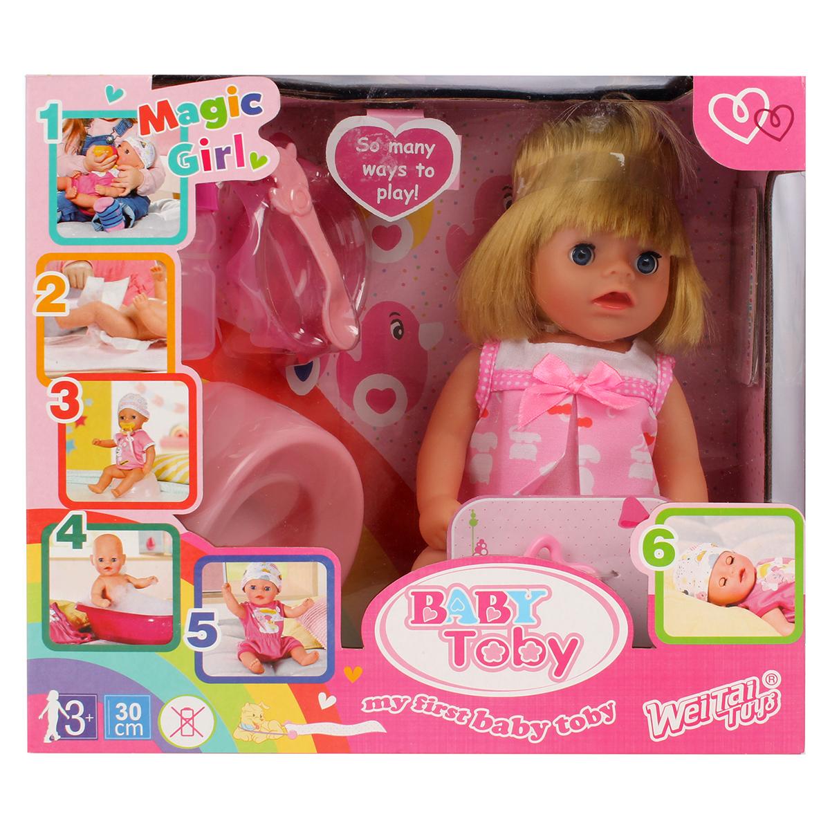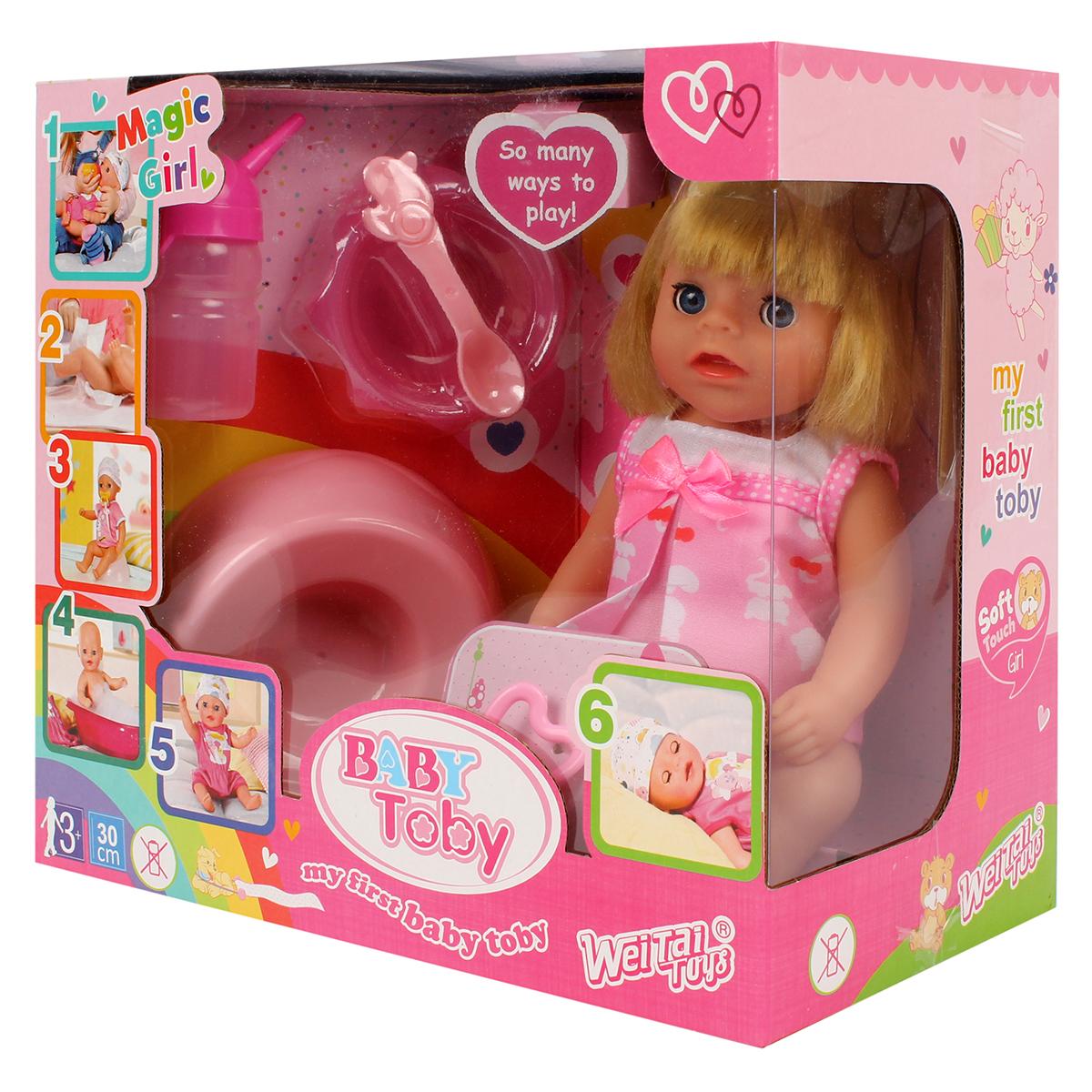 Этот функциональный пупс станет любимой игрушкой для вашей девочки. Благодаря реалистичным размерам и аксессуарам, таким как бутылочка, горшок и тарелка, малыш сможет играть в ухаживание, что способствует развитию заботливых навыков и фантазии. Высококачественный пластик и винил обеспечивают долговечность и безопасность при игре.