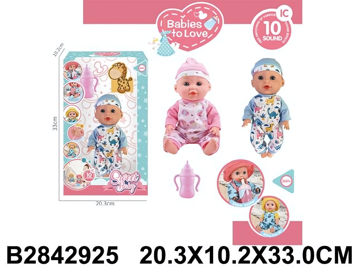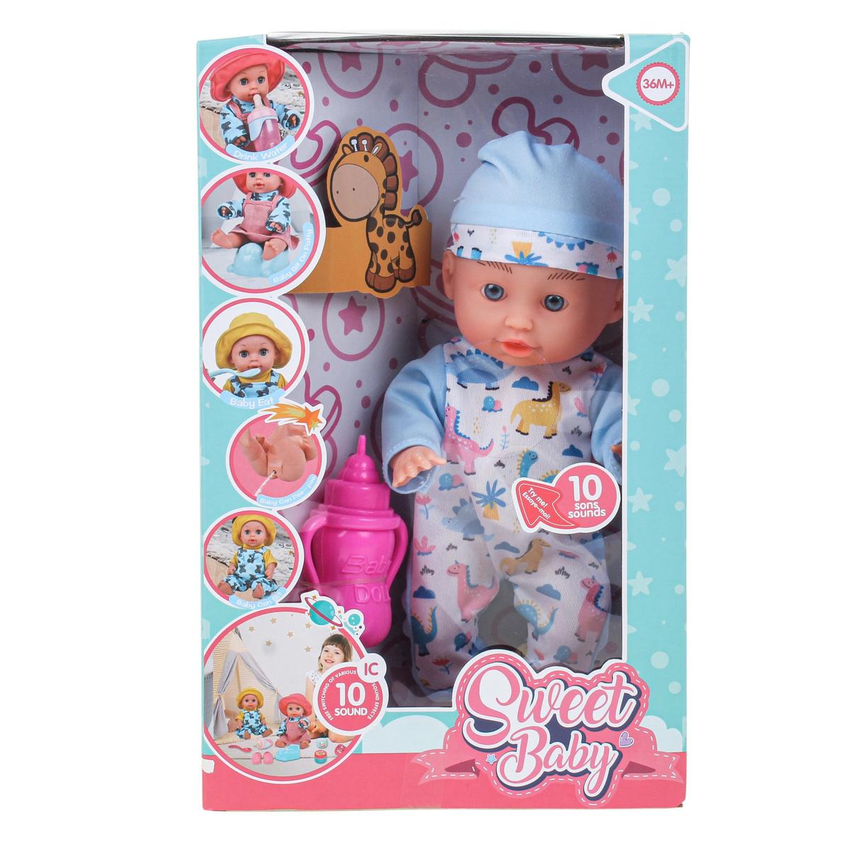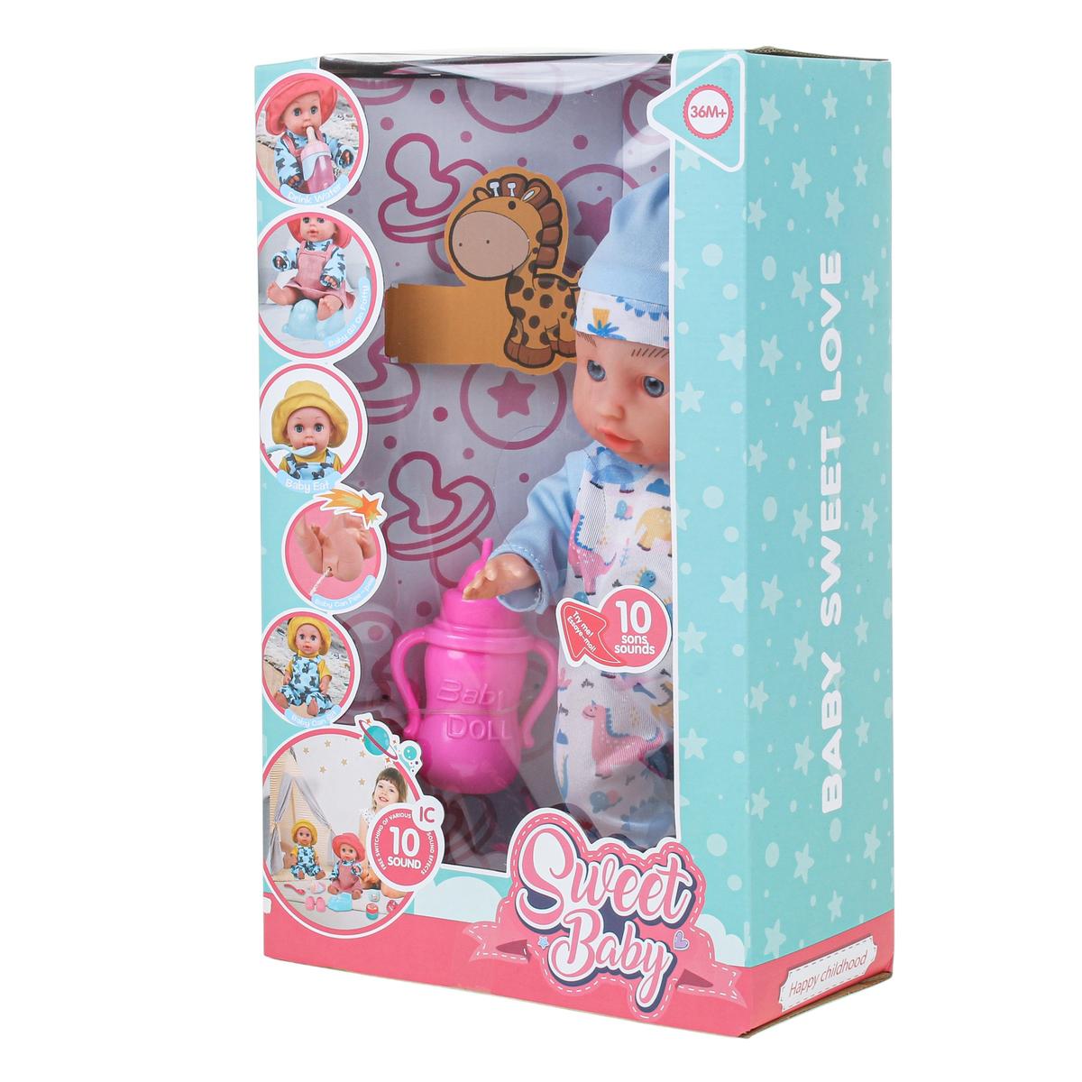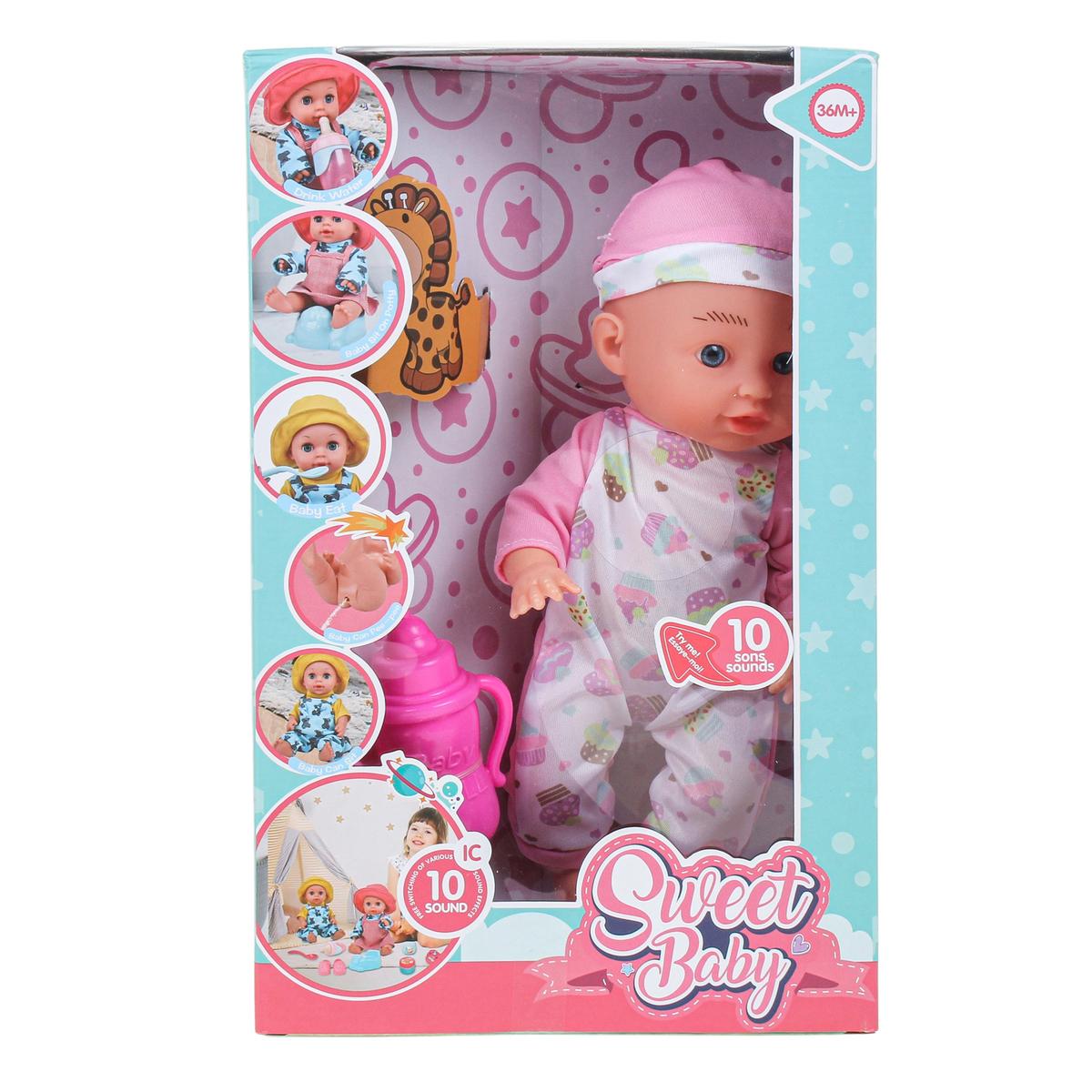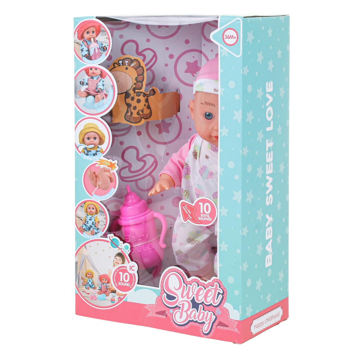 Пупс Sweet Baby с 10 звуковыми эффектами поможет ребёнку почувствовать себя заботливым родителем и сделает игру более живой и реалистичной. Игрушка реагирует звуками, что усиливает эффект присутствия и поддерживает интерес малыша на протяжении долгого времени.