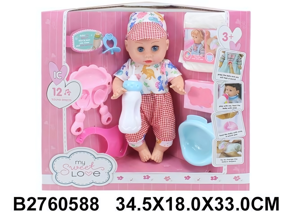 Игрушка упакована в прочную коробку с прозрачным окном, что делает её идеальной для подарка. Пупс предназначен для детей от 3 лет и помогает развивать воображение, заботливость и социальные навыки. Купив этот набор, вы подарите малышу множество счастливых моментов.