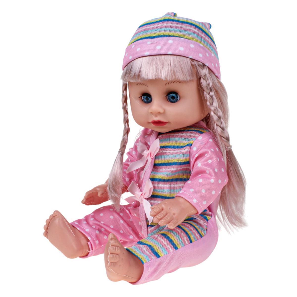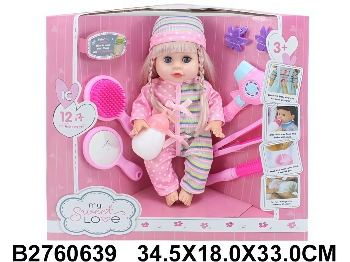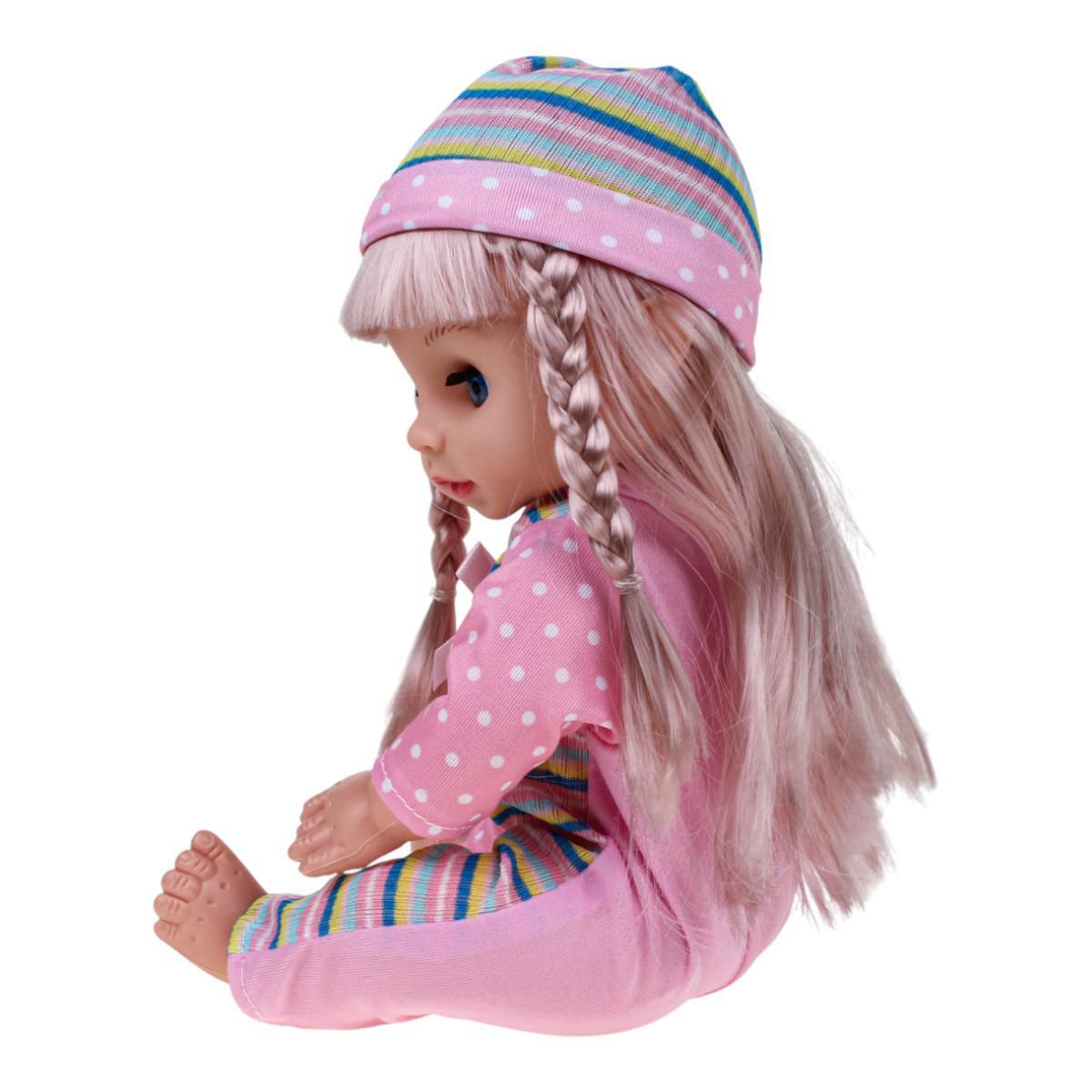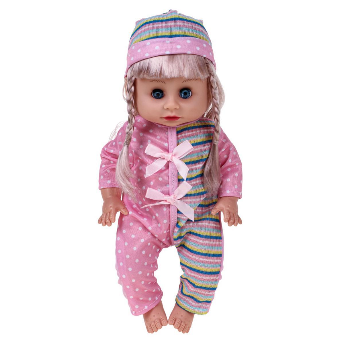 Все аксессуары безопасны для ребёнка и выполнены из качественных материалов, что гарантирует долговечность и приятные тактильные ощущения. Пупс высотой 33 см одет в яркую пижаму в полоску и розовую кофточку в горох, что привлекает внимание и делает его стильным персонажем для игр.