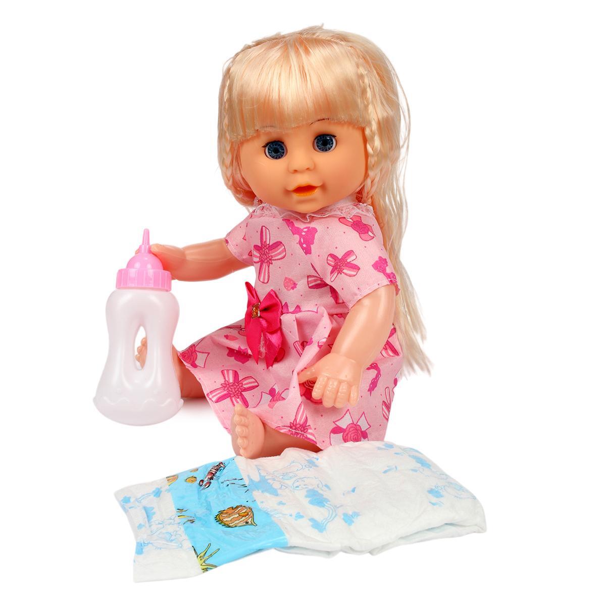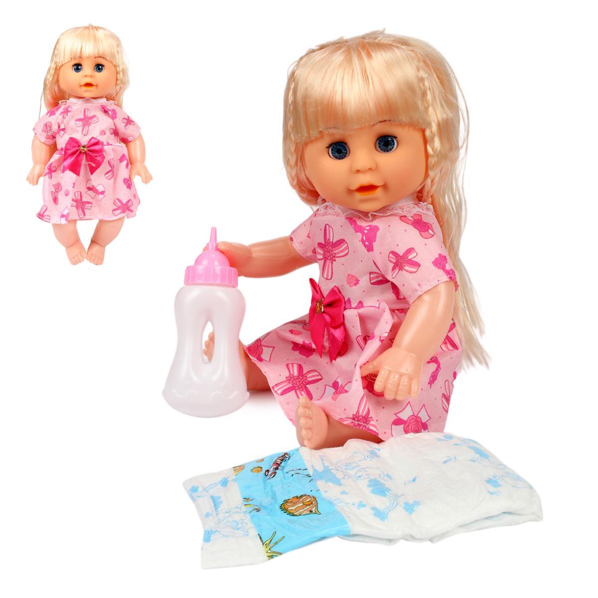 Пупс интерактивный 31см, светлые волосы/голубые глаза, звуковые эффекты, бутылочка и подгузники в комплекте