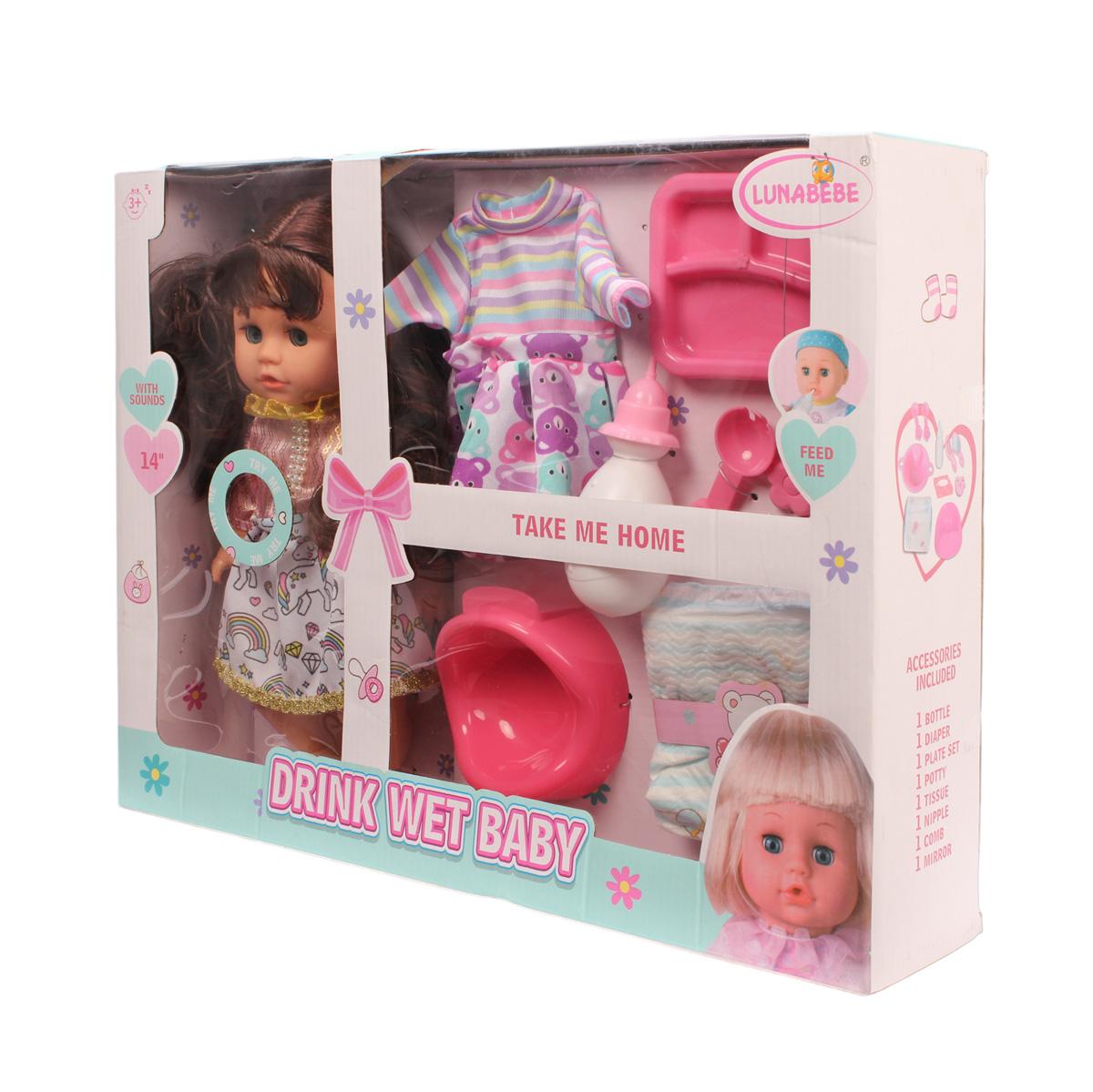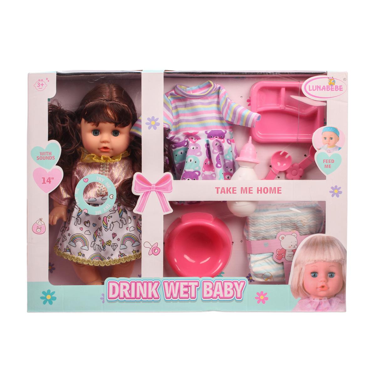 Пупс функциональный 35см с аксессуарами, набор для ухода, яркие детали