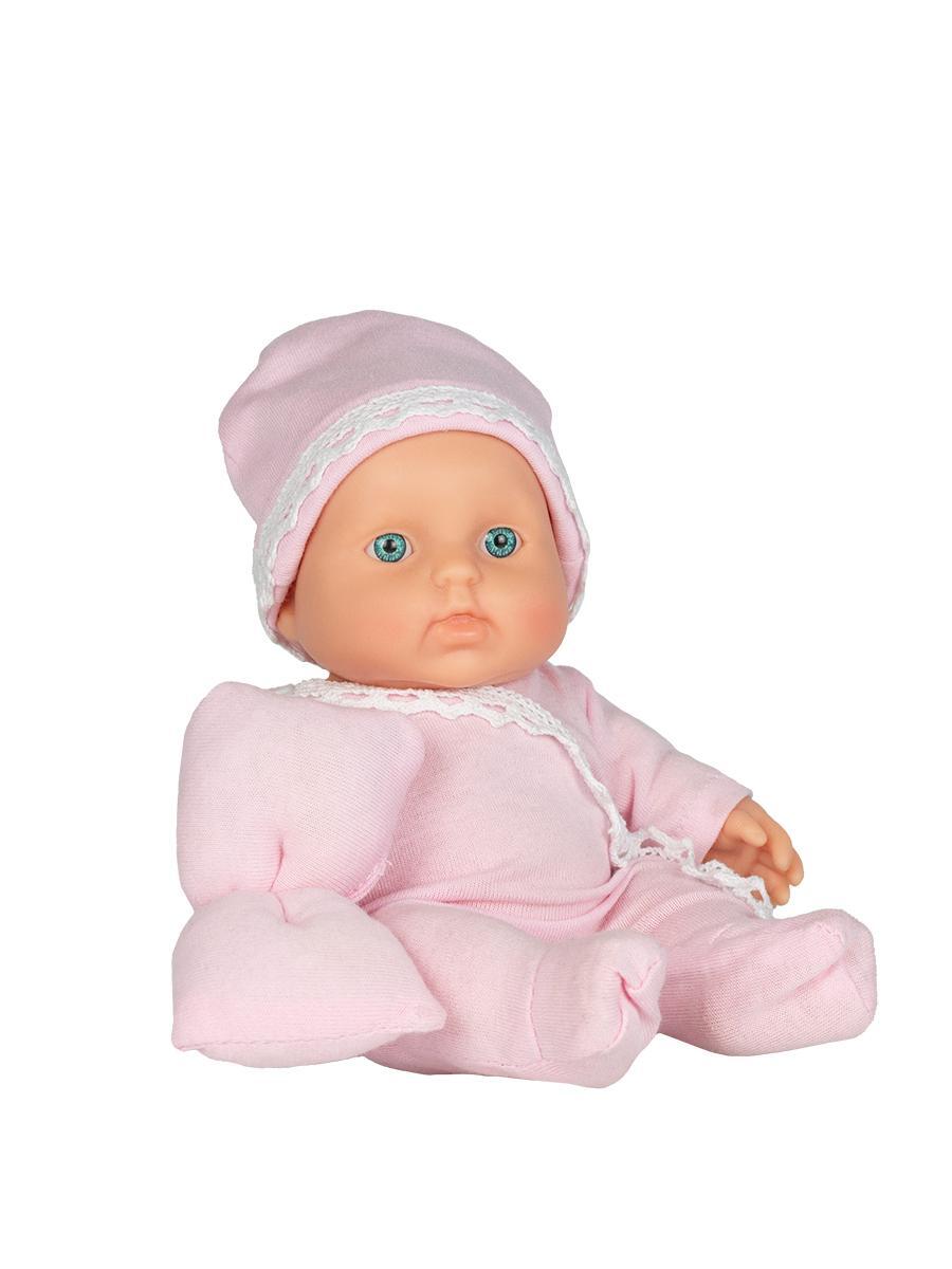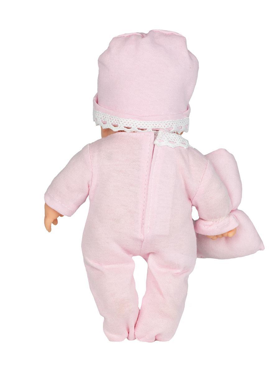 Кукла легко помещается в детские ручки, что позволяет детям сажать её, укладывать спать и переодевать. В комплект входит стильный комбинезон, шапочка и подушечка в виде бантика, что добавляет разнообразия в игру. Благодаря небольшому размеру, пупс идеально подходит для детей, которые любят заботиться о своих игрушках.
