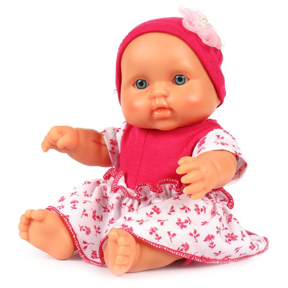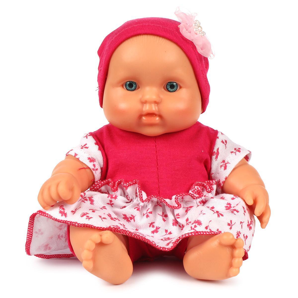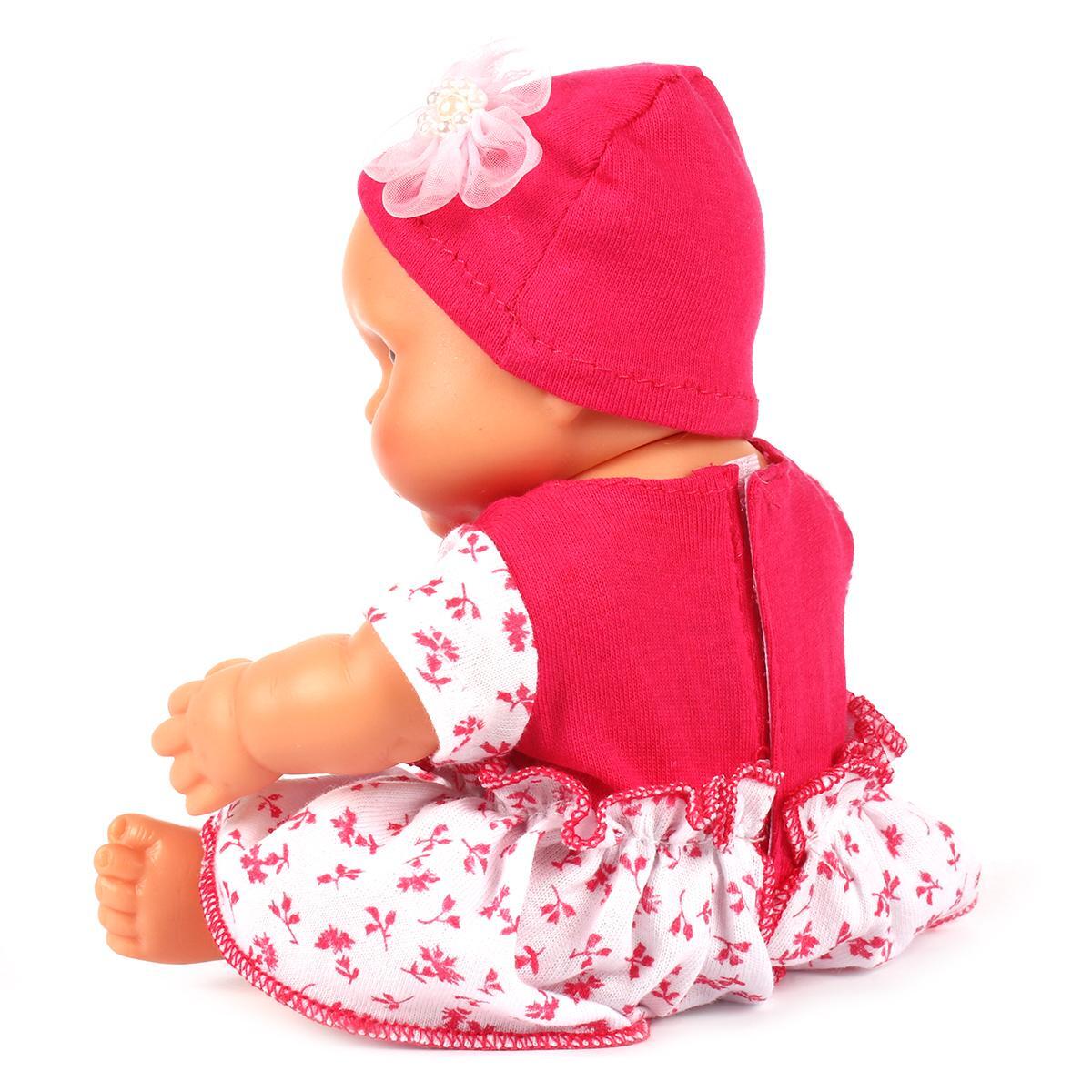 Кукла одета в яркое платье с цветочным принтом и мягкую розовую шапочку, украшенную декоративным элементом. Детали образа продуманы до мелочей: аккуратные оборки, аппликация в виде цветка на шапочке, комфортный трикотаж. Каждый элемент помогает малышу развивать мелкую моторику, ведь куклу удобно переодевать и укладывать спать.