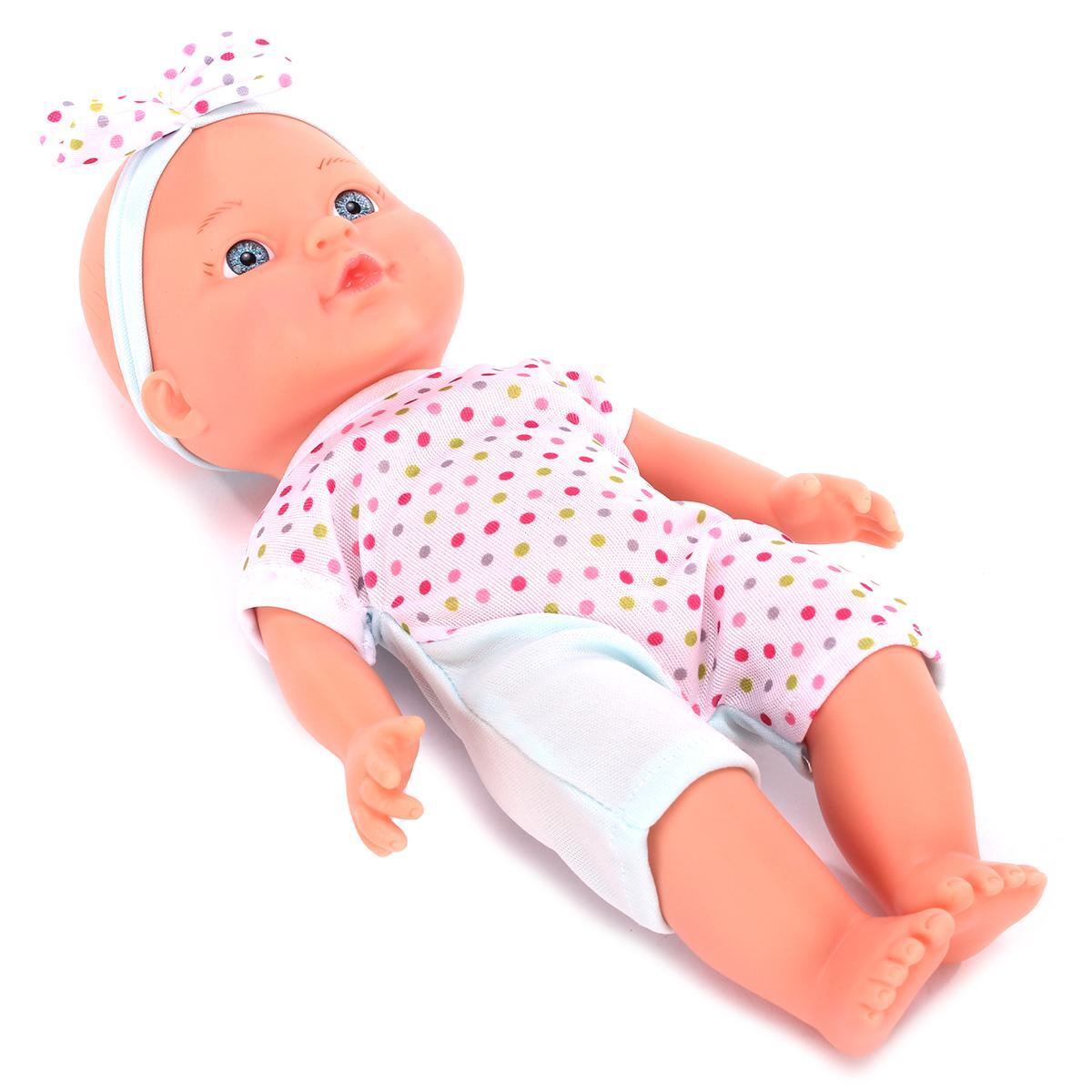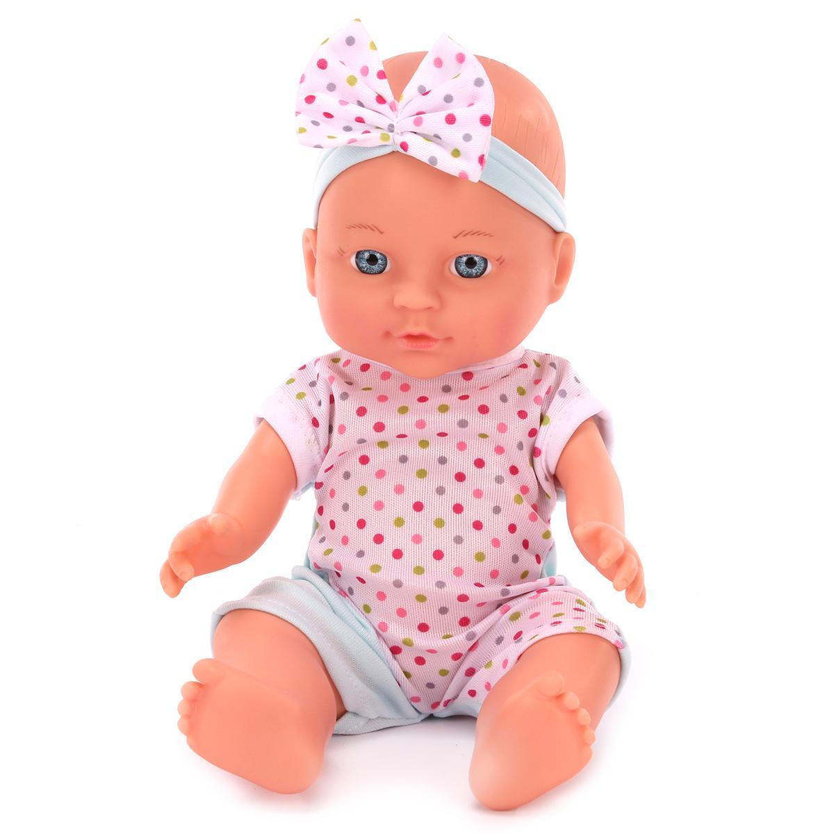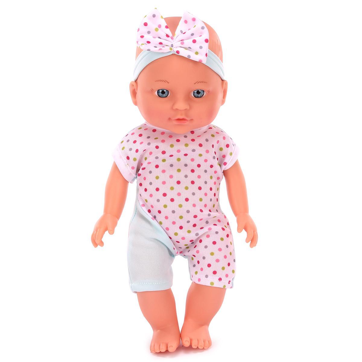 Игрушка изготовлена из прочного пластика и гипоаллергенного текстиля, устойчивого к многократным стиркам. Компактный размер 35 см идеально подходит для детских рук, а нейтральный дизайн позволяет использовать куклу в различных игровых сценариях.