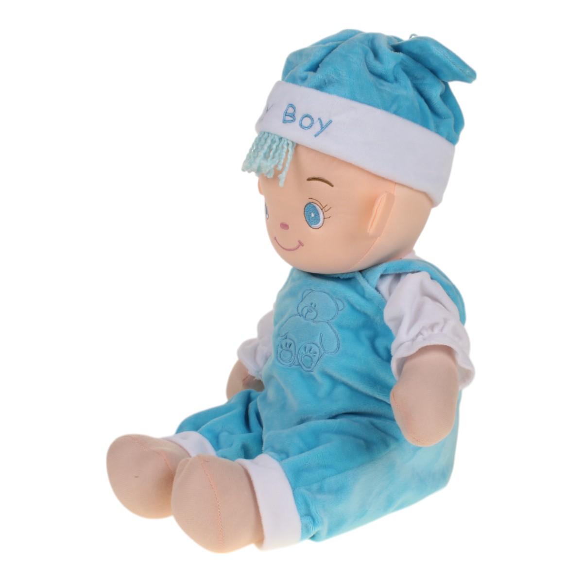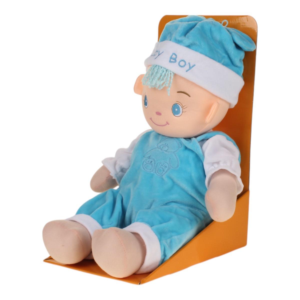 Почему стоит выбрать именно эту игрушку? Во-первых, она выполнена из качественных материалов, что гарантирует долговечность. Во-вторых, милый дизайн с голубым комбинезоном и шапочкой с надписью 'Baby Boy' привлечет внимание вашего малыша. В-третьих, игрушка способствует развитию воображения и эмоционального интеллекта у детей.
