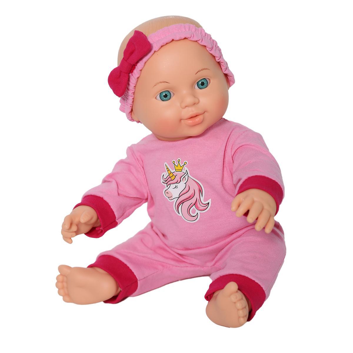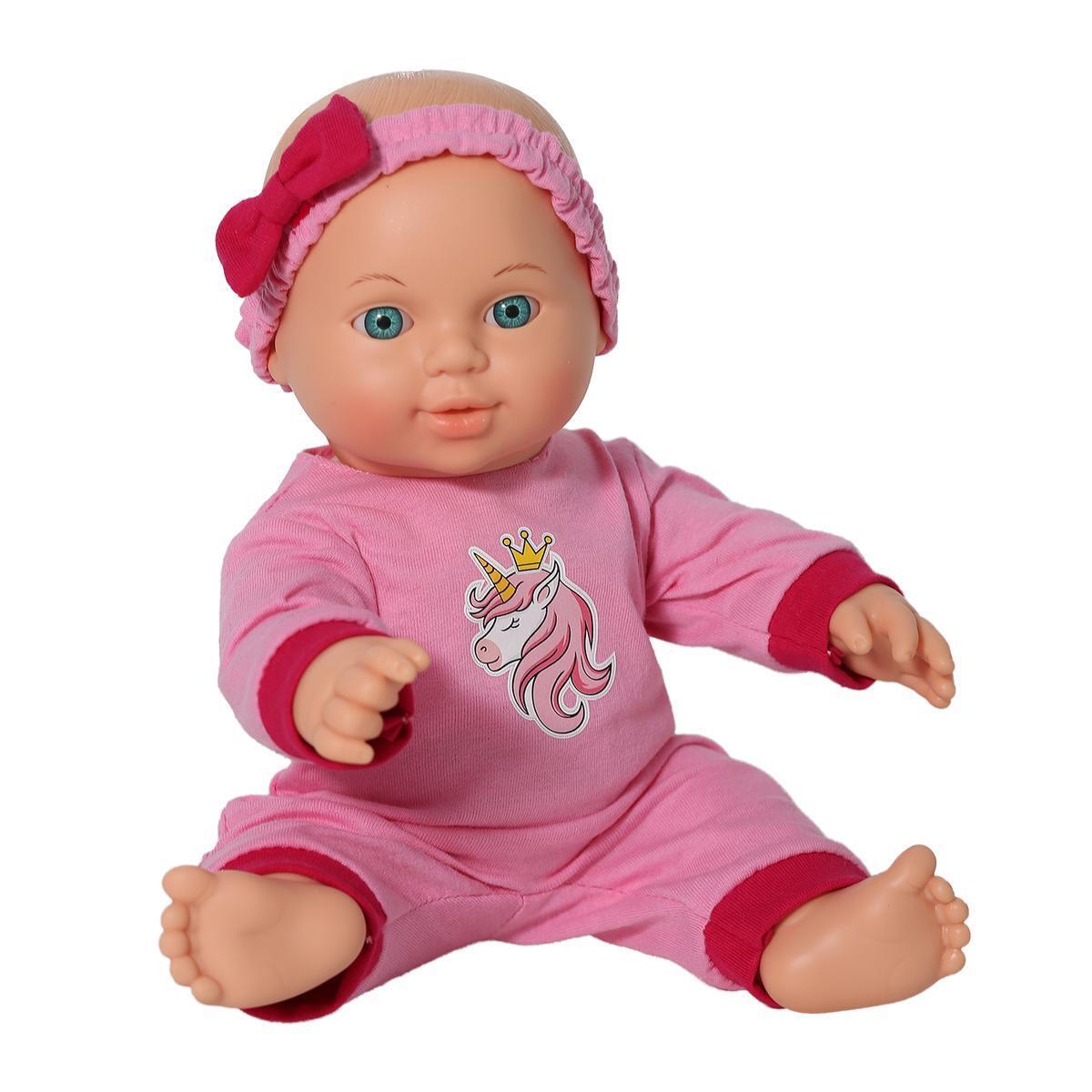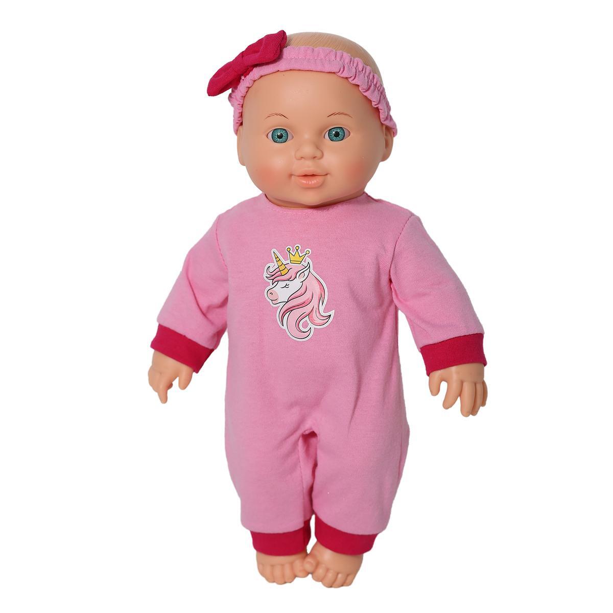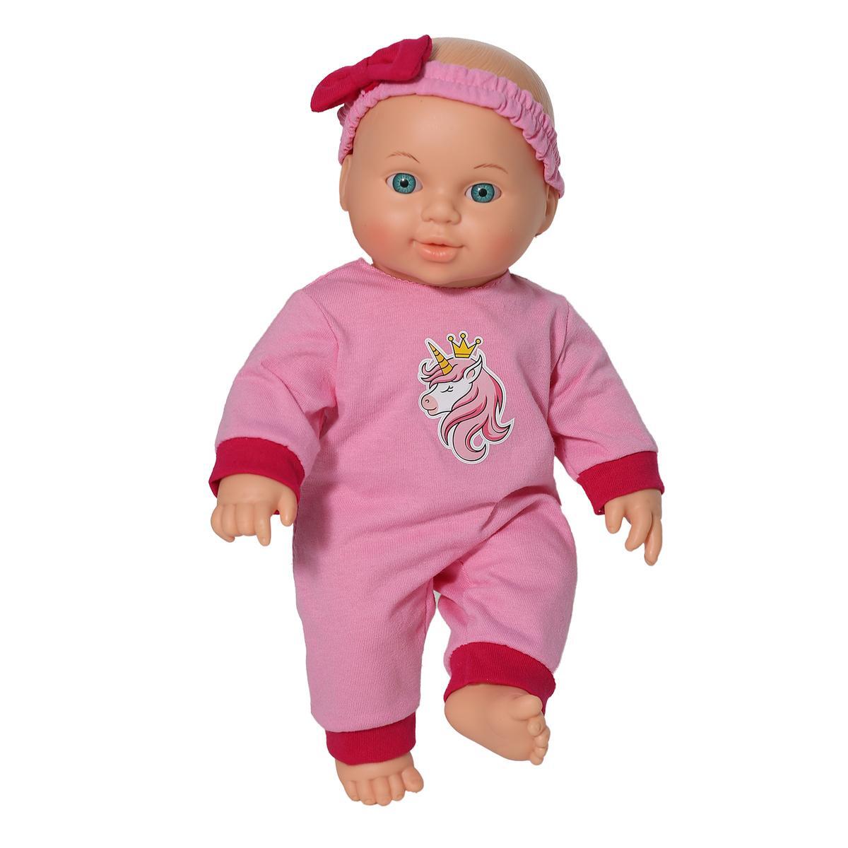 Пупс Малышка Единорожка 30см, розовый комбинезон с принтом единорога