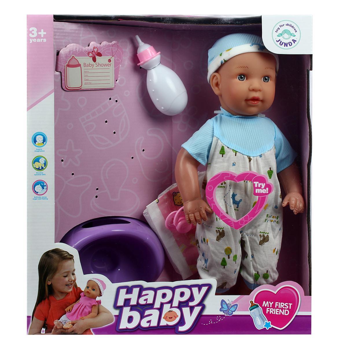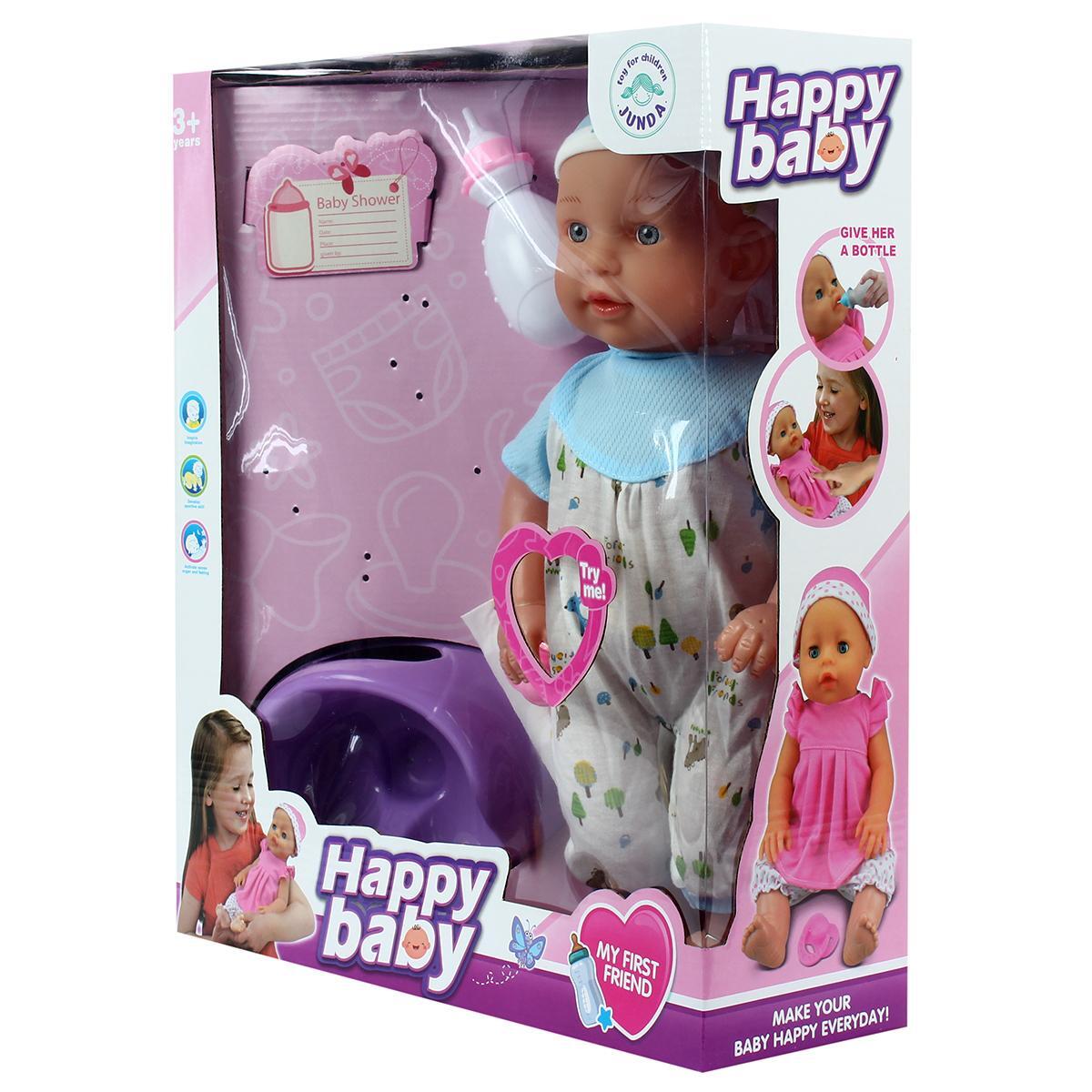 Интерактивный пупс «Happy baby» 38 см, обучает заботе, пьет и писает, с горшком и бутылочкой