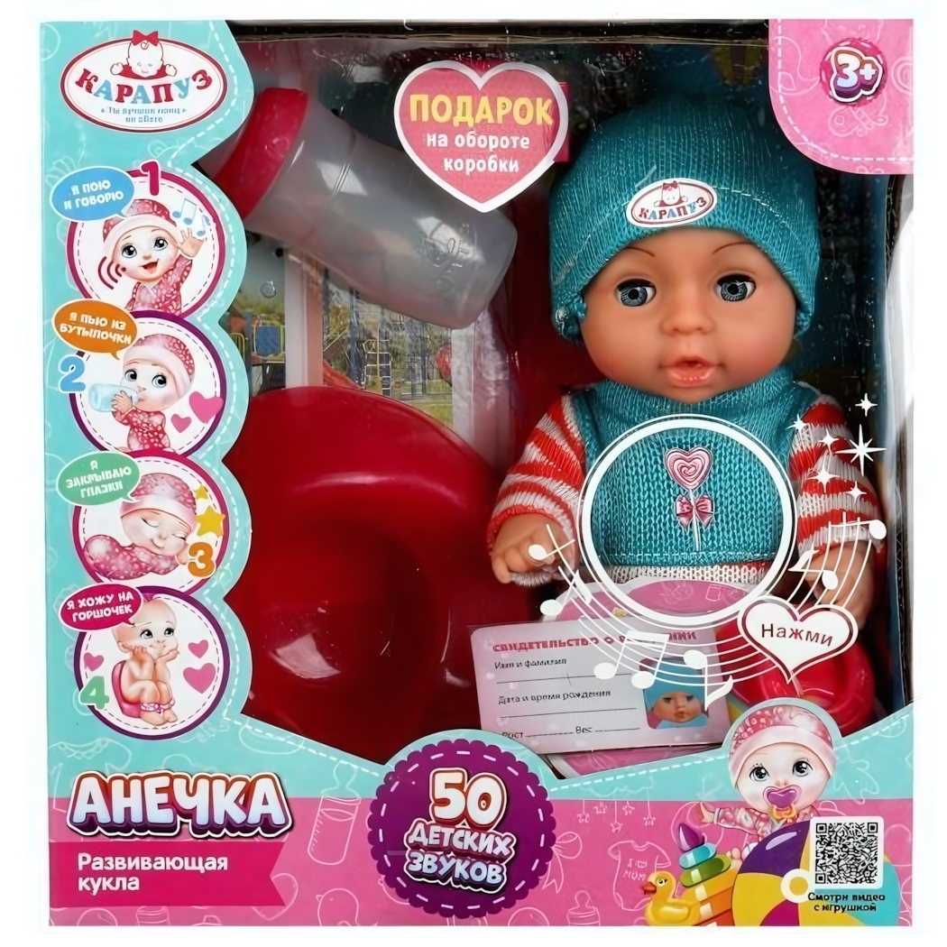 Пупс Анечка — это не просто игрушка, а интерактивный спутник игр: он умеет ходить на горшок, пить из бутылочки и закрывать глазки. В комплект входят все необходимые аксессуары: горшок, бутылочка и пустышка, что делает игру максимально реалистичной и увлекательной.