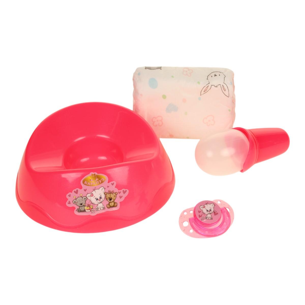 - Полный комплект для ролевых игр: горшок, бутылочка, пустышка, подгузник