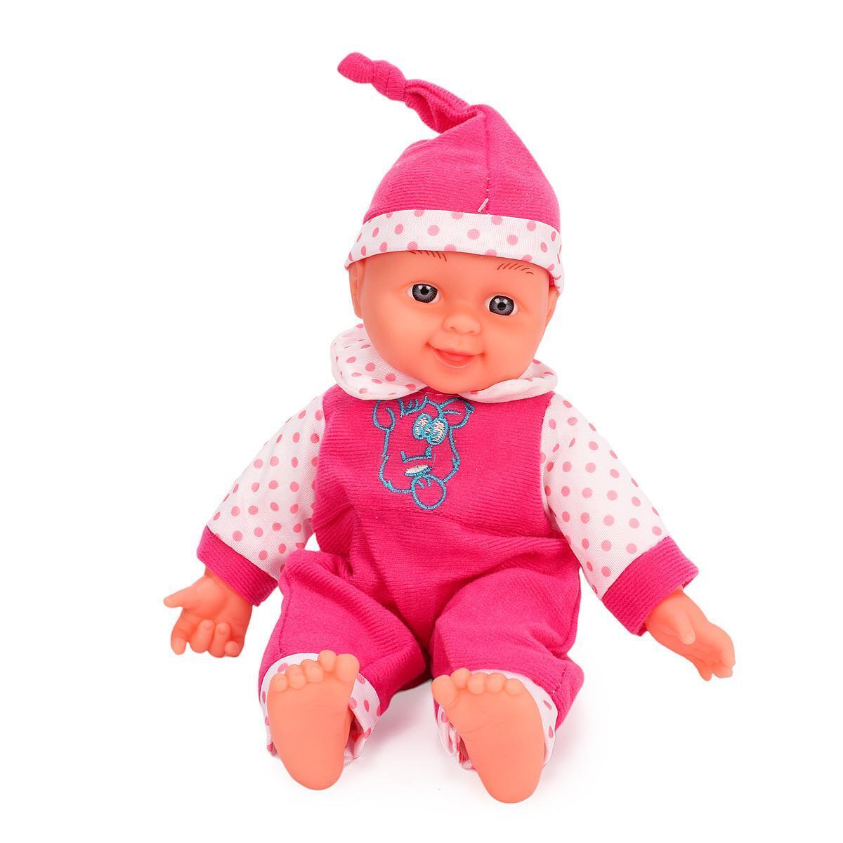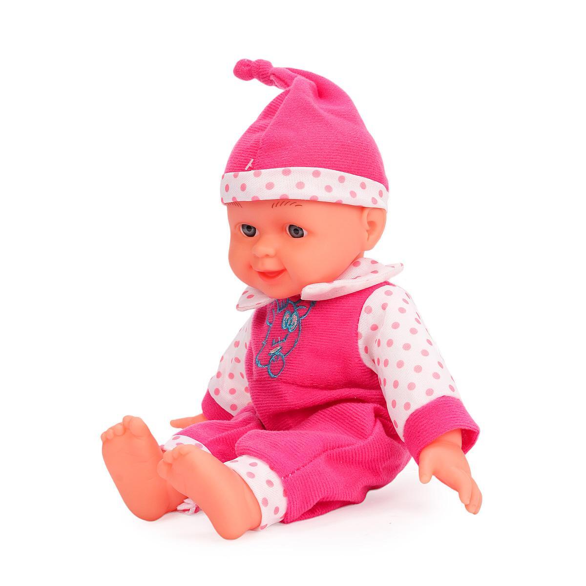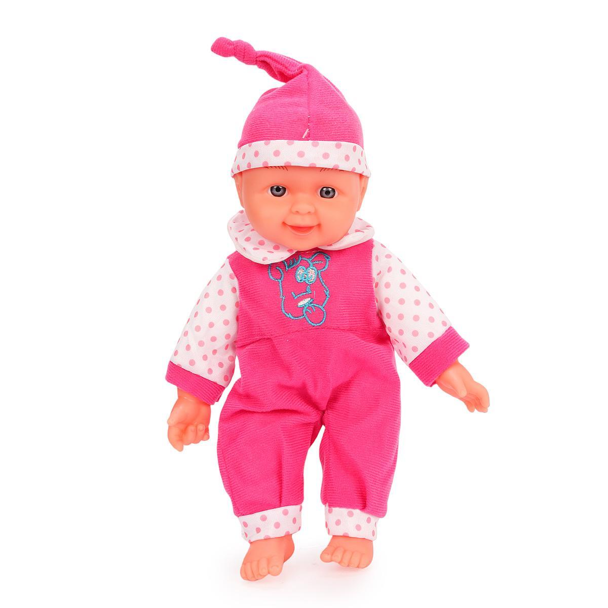 Качественные материалы (пластик и текстиль) обеспечивают долговечность игрушки. Яркий дизайн с розовым комбинезоном и милым чепчиком привлекает внимание детей. Подвижные элементы развивают моторику и воображение.