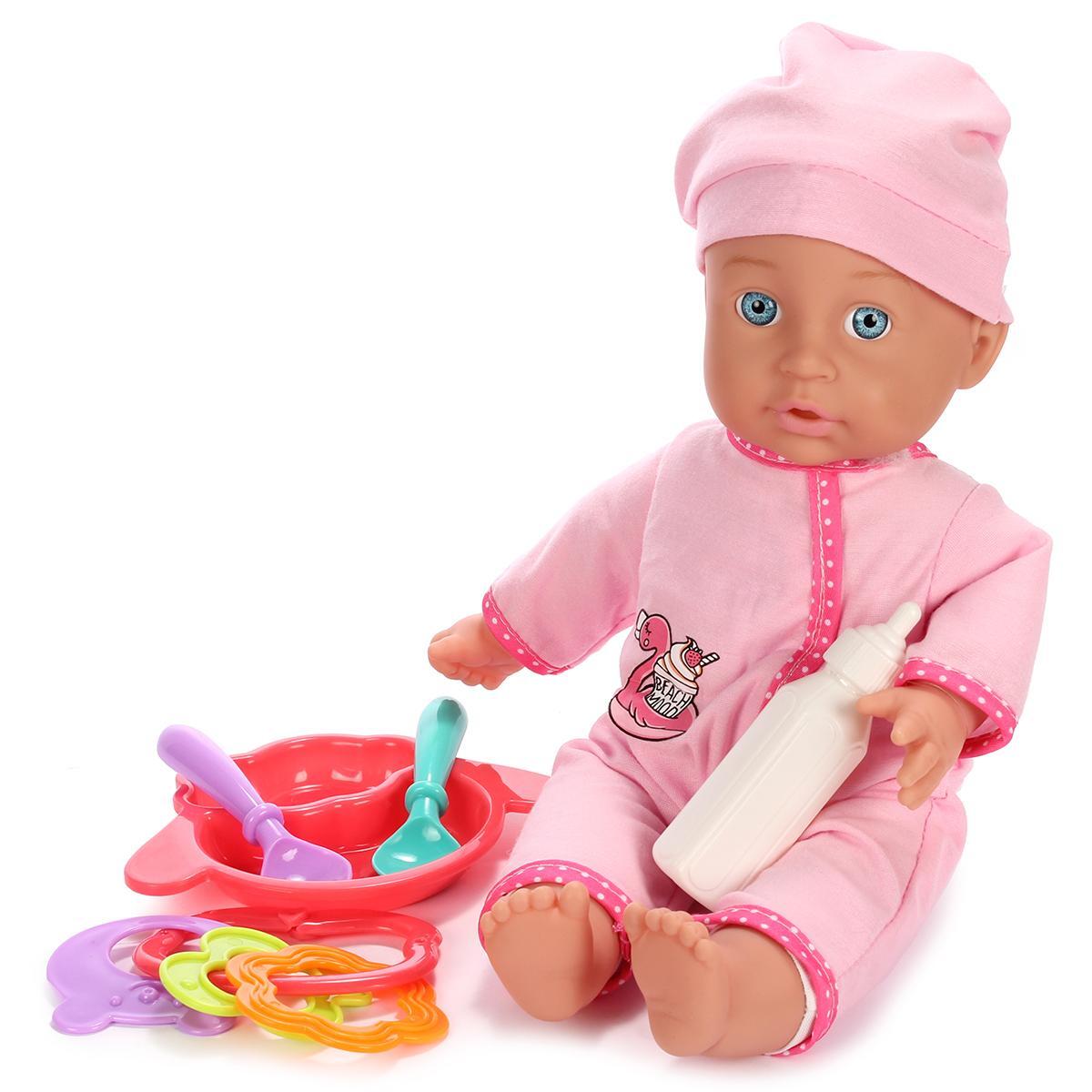 Комплектация: пупс (1 шт.), посуда (3 шт.), погремушки (1 шт.), бутылочка (1 шт.)