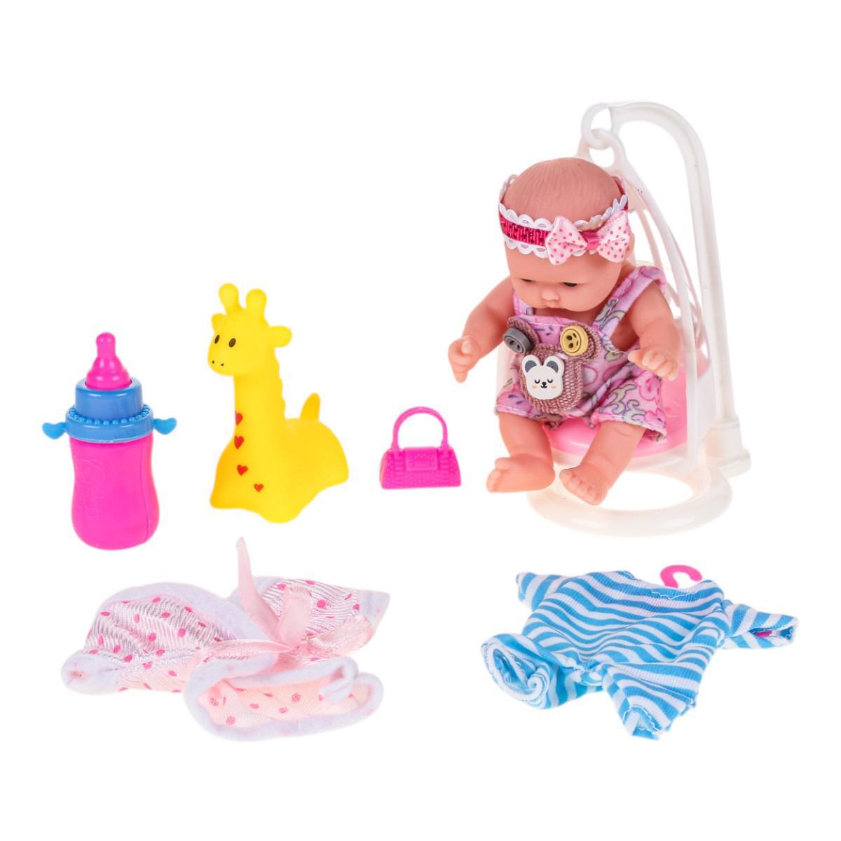 Этот милый и детально проработанный пупс станет прекрасным подарком для вашей принцессы. В комплект входит одежда, качелька, бутылочка, а также аксессуары, которые легко надеваются и снимаются, что делает игру максимально увлекательной и разнообразной.