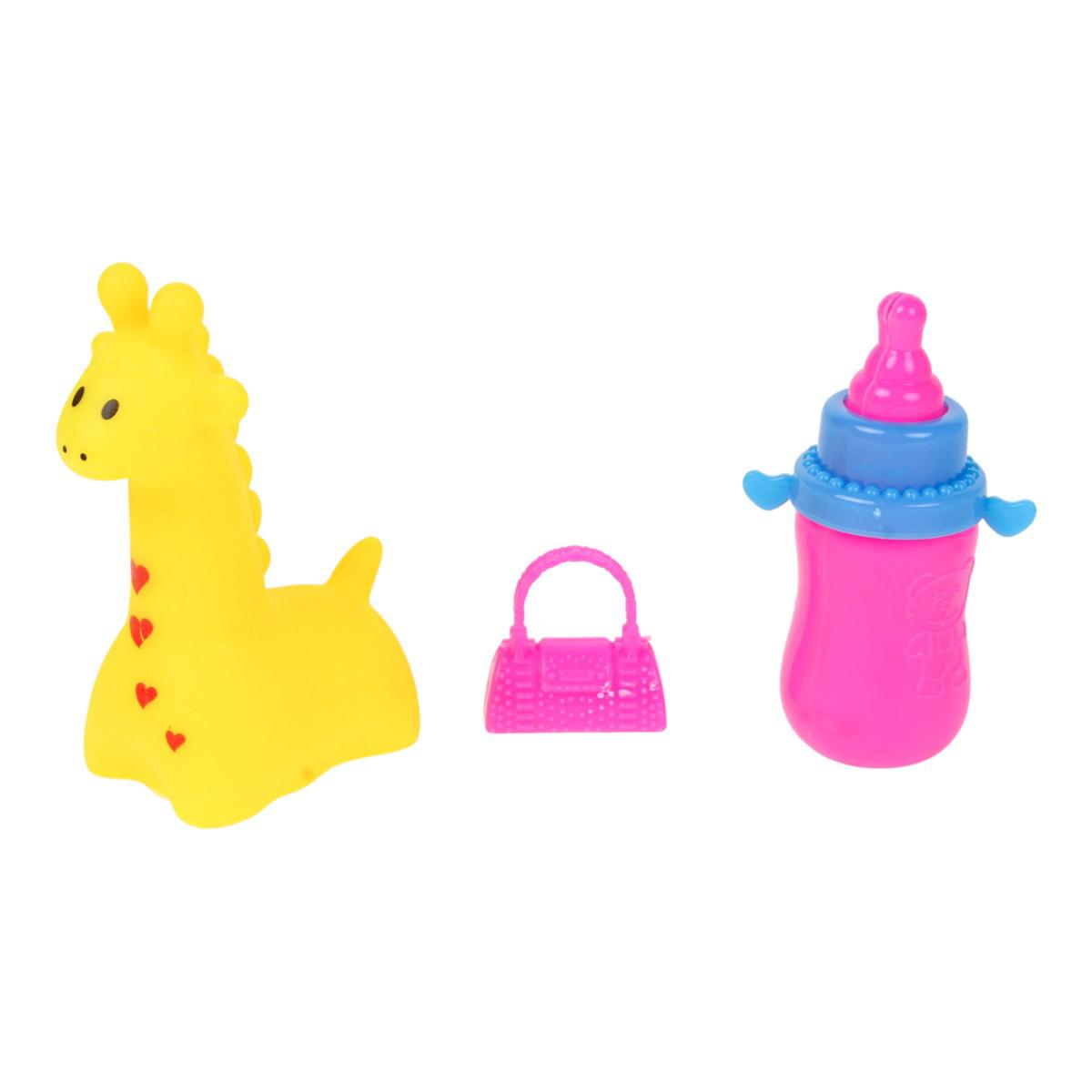 Пупса можно качать на качелях, кормить из бутылочки, переодевать, играть с яркой игрушкой-жирафом и придумать множество сюжетов, отражающих жизнь маленького ребёнка. Такие игры помогают в развитии эмоционального интеллекта, учат заботе и вниманию к окружающим.
