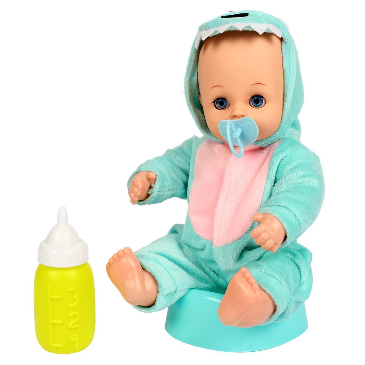 Этот милый интерактивный пупс станет любимой игрушкой вашего малыша! С ростом 30 см, он идеально подходит для игр дома и на улице. Пупс в костюме динозавра не только развеселит, но и поможет развить у ребенка заботу и ответственность. В комплект входят бутылочка, горшок и соска, что делает игру более увлекательной и разнообразной.