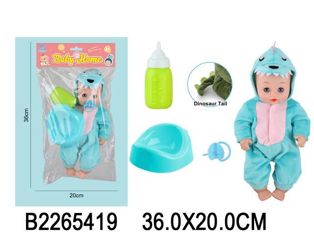 Размер упаковки составляет 36,0 * 10,0 * 20,0 см, что удобно для хранения и транспортировки. Материалы: пластик и текстиль, что обеспечивает долговечность и безопасность. Пупс представлен в ярком костюме динозавра, который обязательно привлечет внимание вашего ребенка.