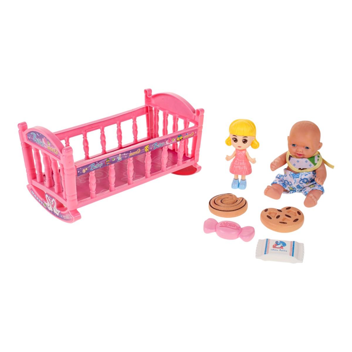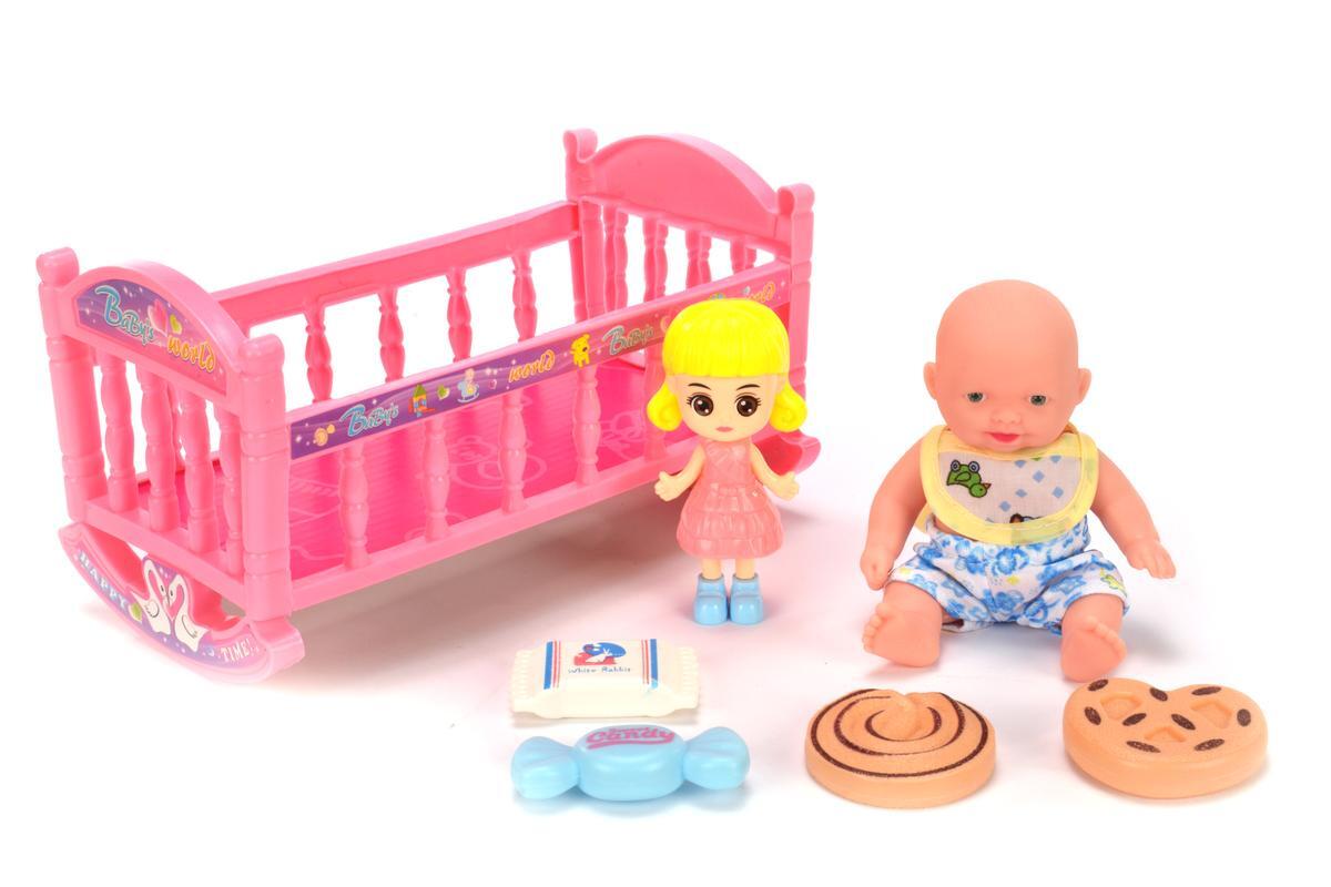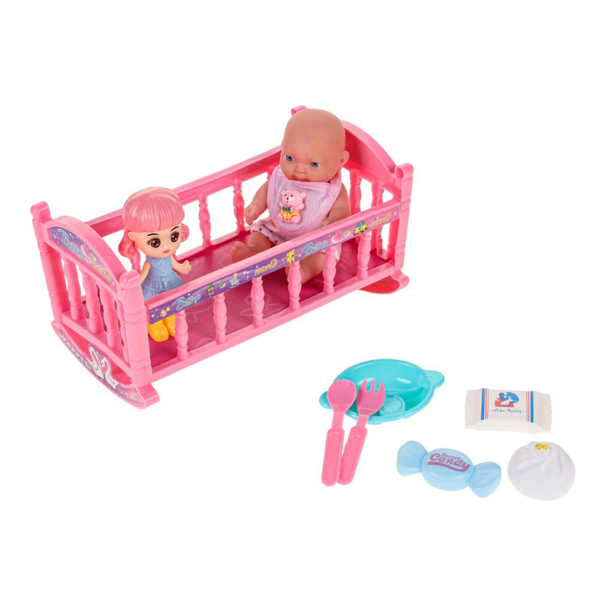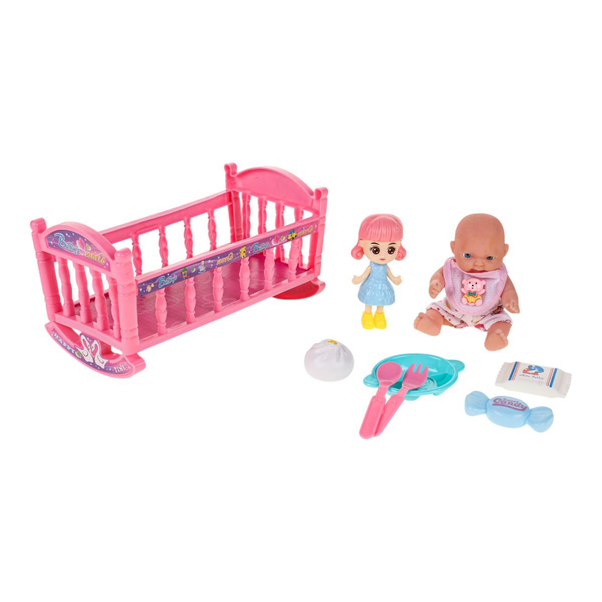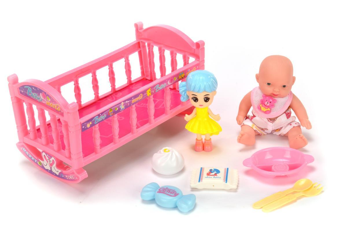 Этот набор игрушек предлагает милого пупса с подвижными руками и ногами, а также комплект аксессуаров для увлекательных игр. Размер пупса — 17 см, он создан из безопасных материалов: пластика и ПВХ, что делает его надежным и долговечным. В комплект входит розовая кроватка с качающимися полозьями, игрушки для сюжетных игр и аксессуары, что способствует развитию фантазии и социализации у малышей.